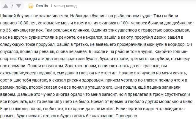>а всякое дно вроде матросни либо хуй без соли доедает, экономя на еде, либо не вылезает с рейсов, работая почти круглый год 130-150к зарплата, койко-место и бесплатная еда. Бедные матросы, которые 500-600к за 4 месяца привозят. Тут не то что соли, а уже и хуя нет. Только вот даже днари в море это ужe люди с net worth >80% россиян. Если у человека ещё бонусом интеллект есть и он учится на комсостав, то это вообще король по жизни.