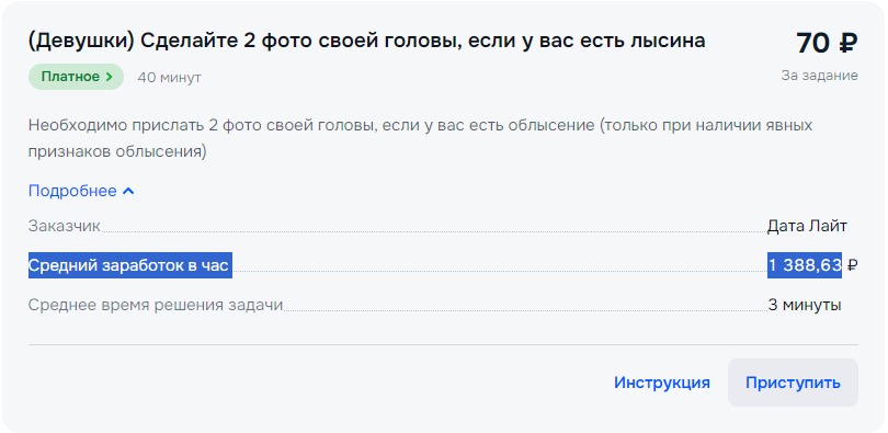 Зарегился я в этой вашей помойке. Кое как перед этим стал самозанятым, госуслуги глючная параша пиздец. Ну в общем сразу накидали заданий за 20руб. и за час заработал уже 80руб. Но рано радовался, уже второй день всякая параша и думаю дропать эту хуйню. Реально дроч за копейки. Мазохизм. Голова болит от этих рутинных заданий, мозг так давно не напрягаться, причем напряжение и усталость не полезная, а какая то утомляюще-убивающая, паражняковая. По таким энергозатратам надо зарабатывать раз в 100 больше. Короче Того не стоит. Ну его нахуй.