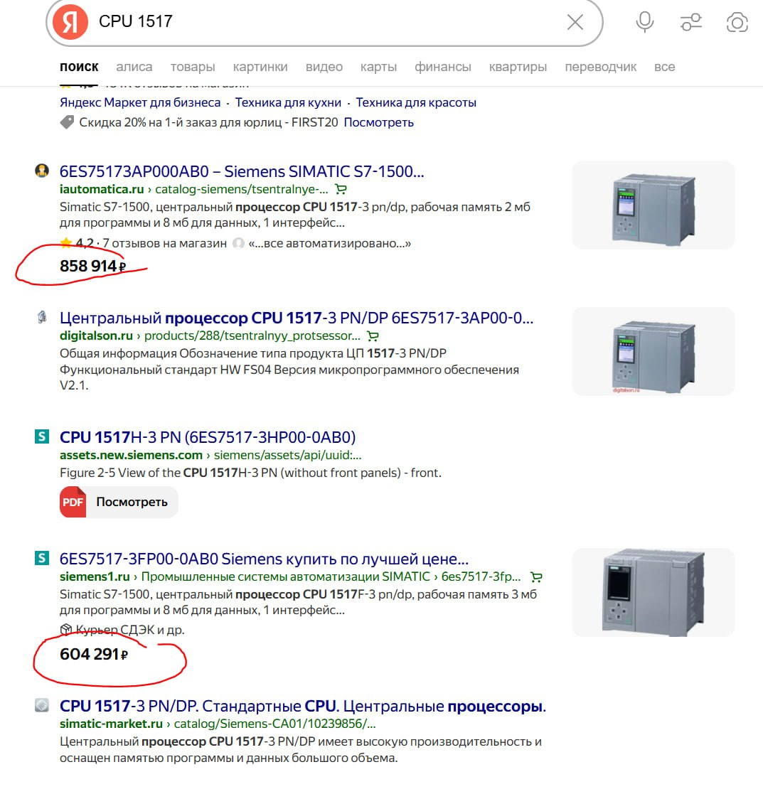 >>3184085 >нихуя не вижу на авито дешевого Я успел только ПЛК150 за 10к взять и две МВ110 за 3 к и пиздец. Модули В/В - 5-7к за один, блоки питания чуть дешевле чем у овна покупать. Да и все прочее так же