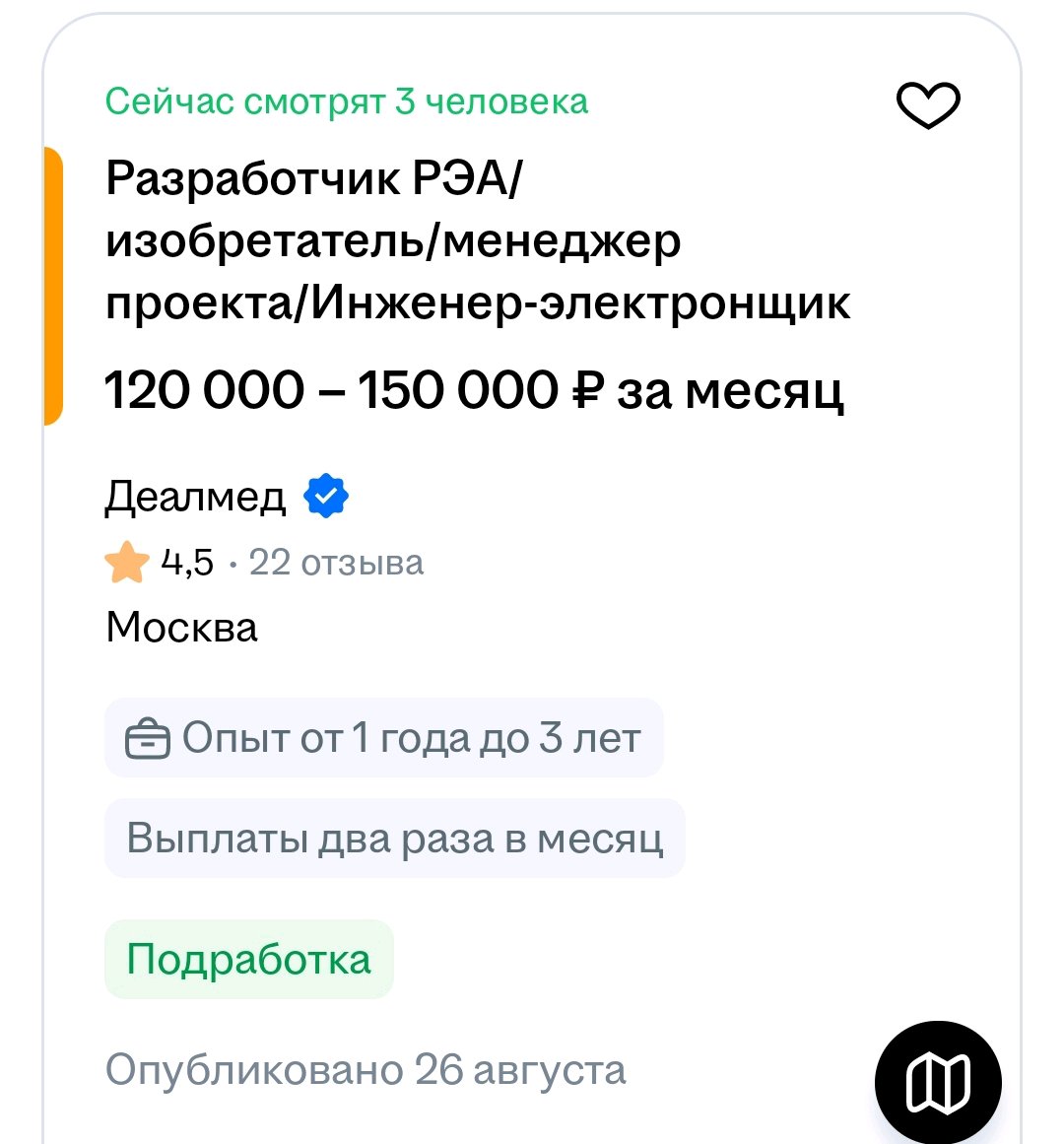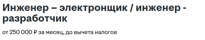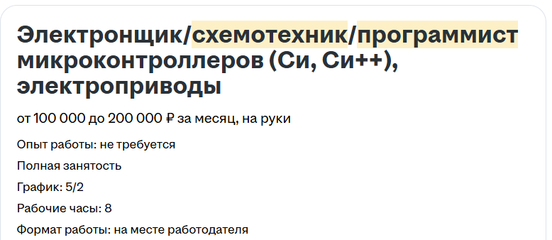 >>3180458 встречал вакансии где требовался мастер-многостаночник, умеющий прогать микрики, плк, разводить и паять платы, разрабатывать scada системы на qt и работа с графиком 6/1и за 70к само собой когда на вакансиях 200-300к требуют только что-то одно и там еще и свободный график или пару часов в день работают такое чуство что между зарплатой и требуемыми обязанностями обратно-пропорциональная зависимость
