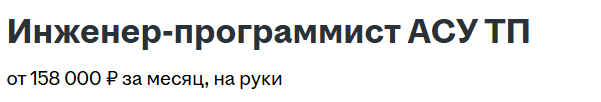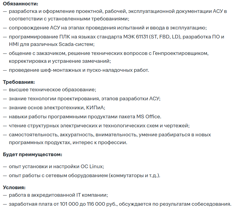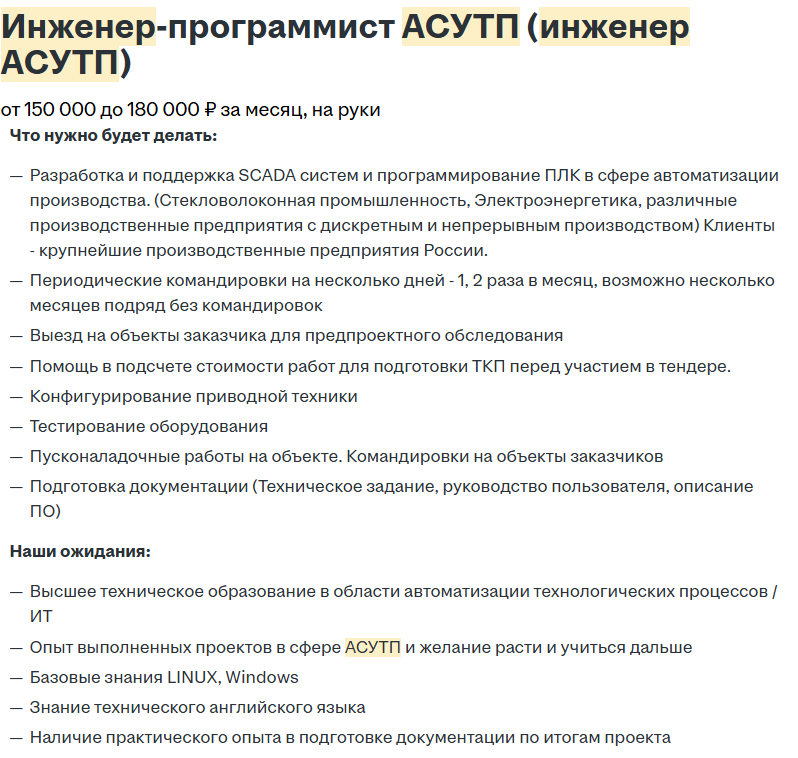 Ну а если ты чистый КИПовец-LDшник... Тут тогда уже другой вопрос. Мой пост был адресован АСУшникам, которые умеют всё, но не умеют ничего. Если ты пиздат в какой-то более узкой области и тебя отрывают с руками на станции на 80к, то петь надо по другому.