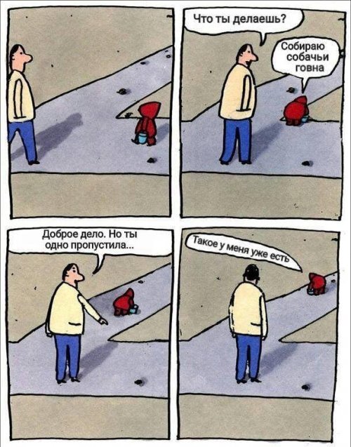 В который раз на те же грабли... Идём в столовую с каллегой, из кабинета вылетает какой-то чел и врезается в меня. Я ему говорю: - Полегче на поворотах, другалек Он посмотрел недоумевающе и почапал дальше. У коллеги глаза стеклянные, говорит мне: - Ты чё долбоеб блять Короче, это оказался никто иной как владелец компании