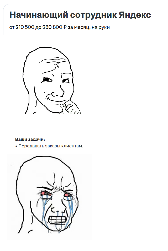 >>3182337 >Не айти, вакансии +/- есть Хоть бы специальность написал, ёпта. Но если по дну смотреть например, то положняк таков: >Как в 2к25 искать работу? 1. Блат. 2. Унижение в госухе с дедами за копьё. 3. Свежие непуганые кабанчики (без оформления конечно, и есть риск, что они проебут весь капитал за полгода и уйдут таксовать, а тебя кинут на зп). И на этом всё. Хорошие места передаются по наследству.