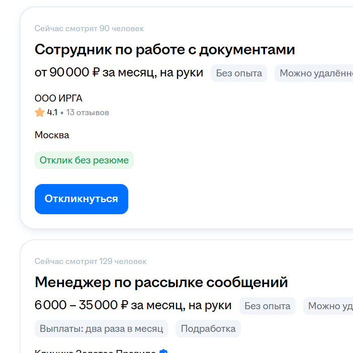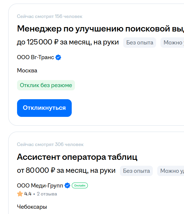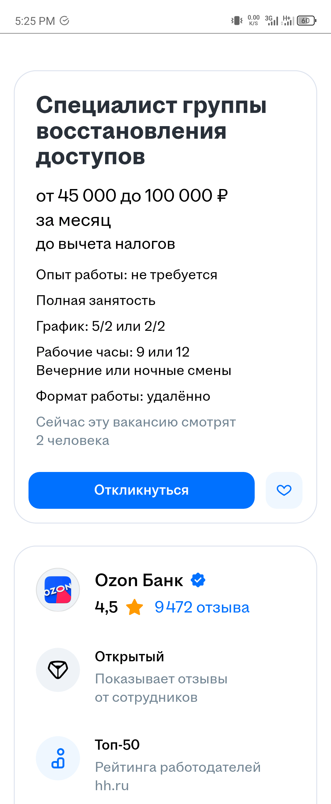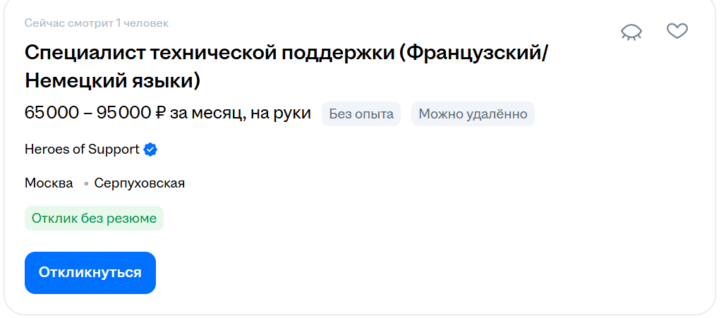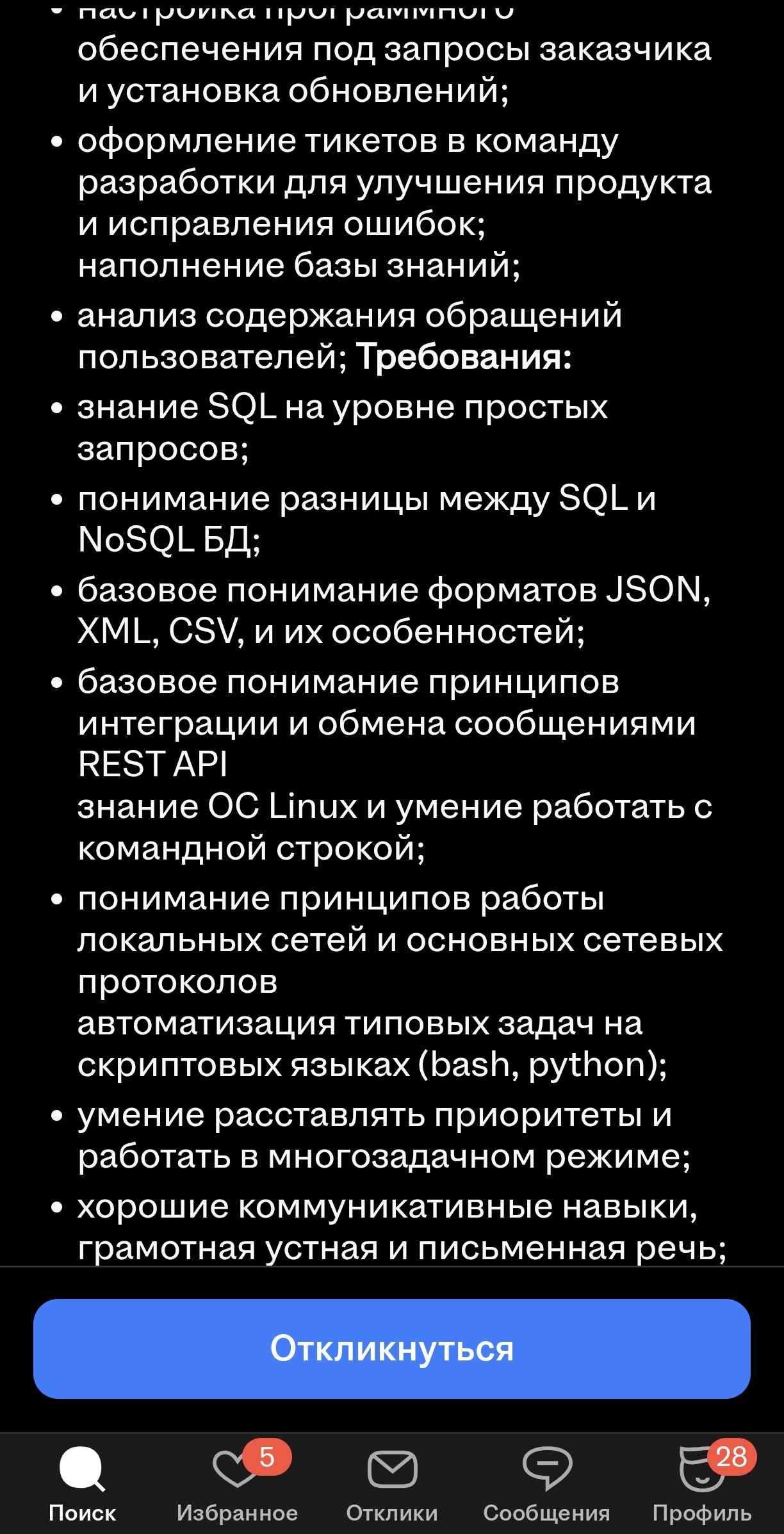 Причем такое на четверти вакансий после фильтрации. Пробовал откликаться с 6 опытами в тех.поддержке пока такой же игнор, хотя нет 5\2 и 6\1 предложили на входящих
