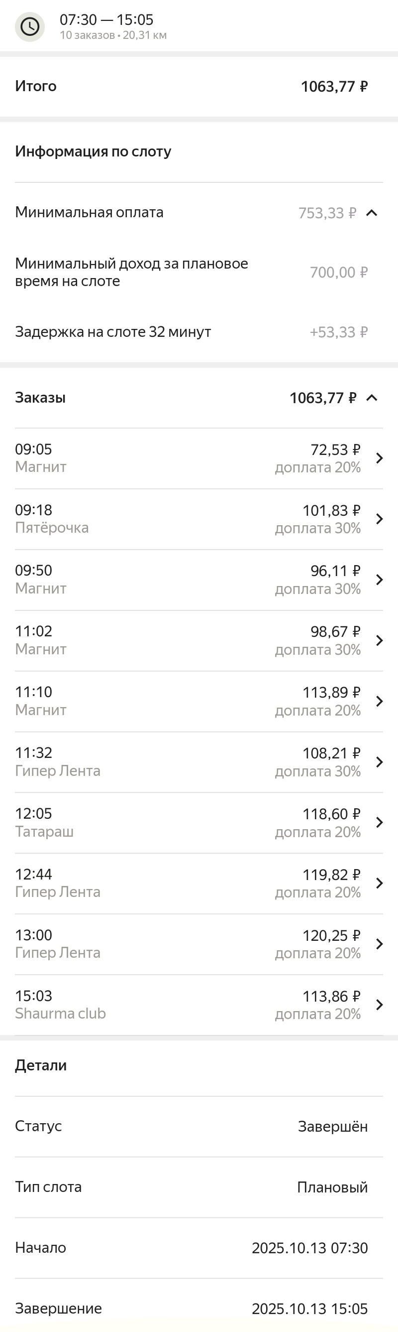 А вообще в целом курьерка на авто, во всяком случае в моём городе - умерла. И это касается всех доставок какие у нас есть. Яша - еда/доставка, скуфер, говнит, просрочечка и так далее. Еда с 1к в час в прошлом году на старом тарифе скатилась до 350-400... Это мрак нахуй. Любимая доставка была. Надо уходить в такси.