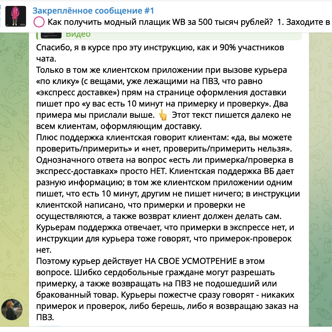 >- теперь если заказ до двери и клиент написал жалобу об отсутствии заказа, то во всех случаях ВБ тебе даёт недостачу В смысле? Ты передал клиенту все его дилдаки, он пересчитал, ты ввел код (перед передачей, да), а схуяли он потом недостачу найдет? А если видеофиксацию ебурить?