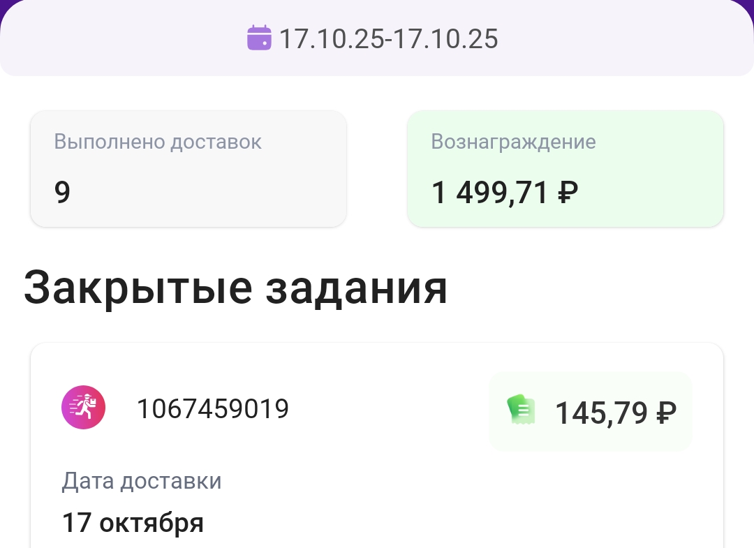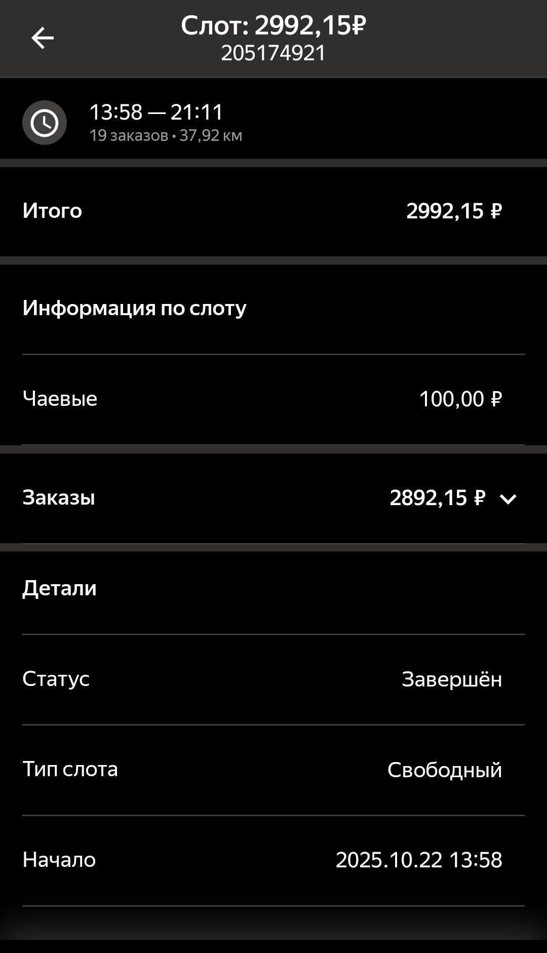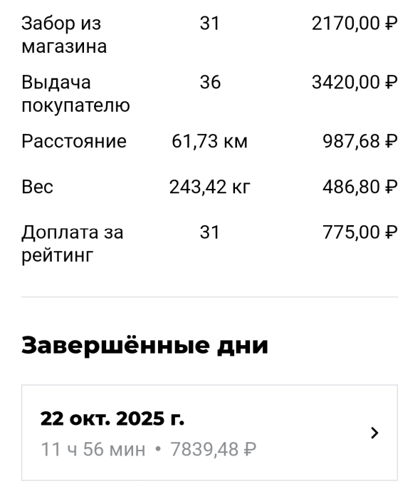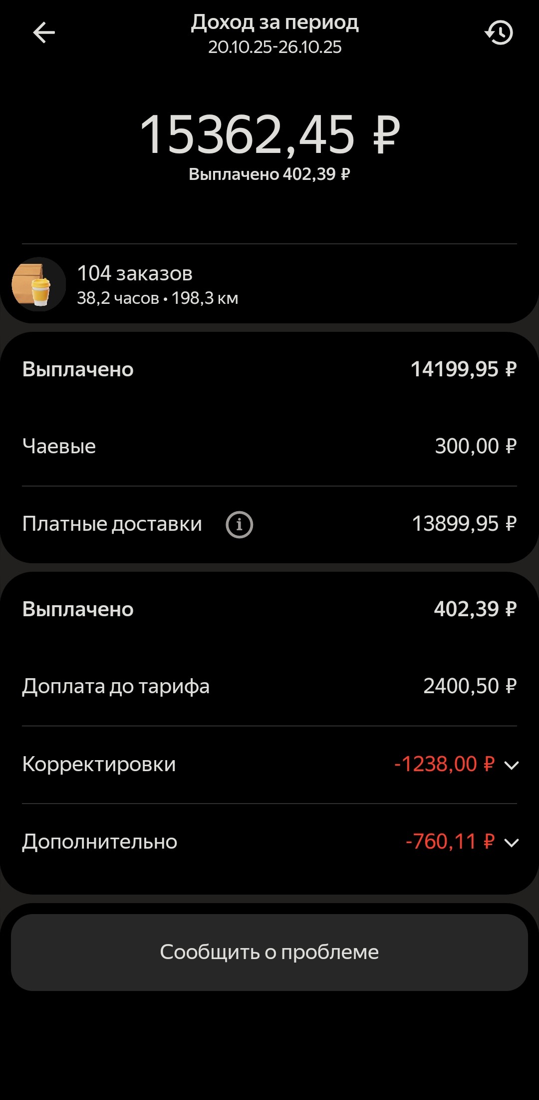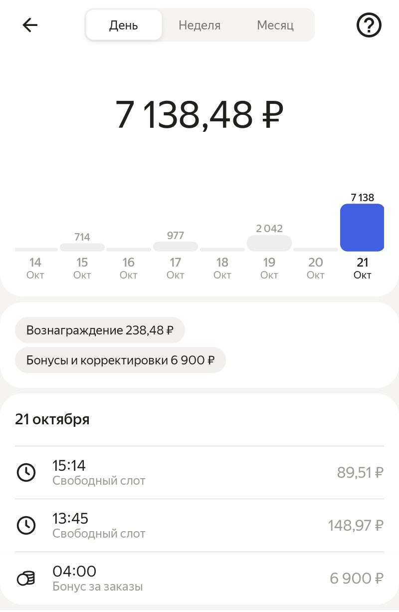 День сегодня был конечно фул залупный, дождь просто нонстоп нахуй. Ну хоть не ливень и на том спасибо. Какого-то хрена вообще не давали коэффициенты, за 42 заказа всего 1 раз был х1.1, вот к этой хуйне у большие вопросы. Летом когда дождливые дни были, там практически каждый заказ был иксованный, часто были х1.25, иногда даже х1.5. А сейчас только за щеку дают, непонятно почему так. Ну и ладно, зато заказов было дохрена, в отличие от прошлой вялой пятницы. Ща ещё на выходных покайфуем без дождя.
