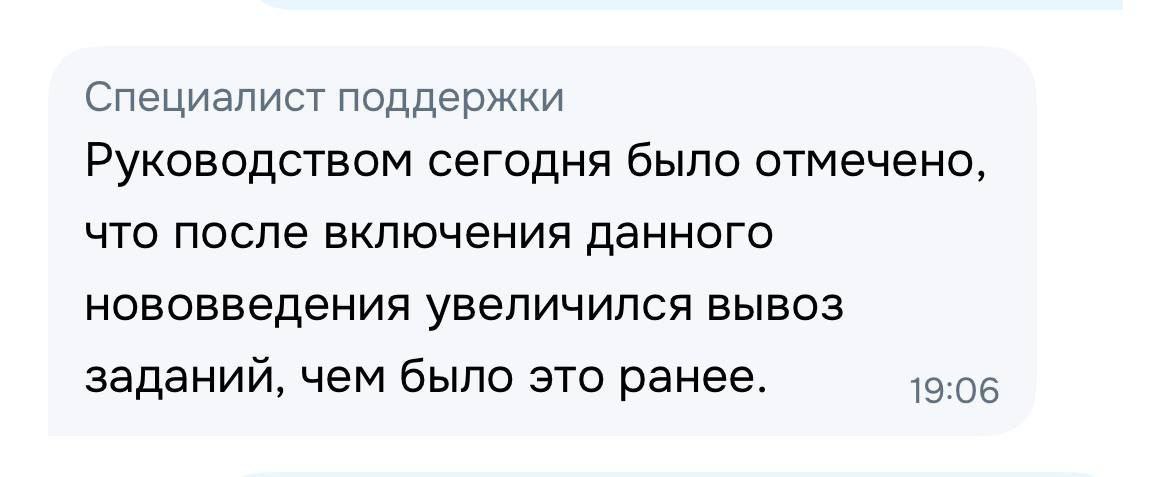 >>3197903 Ну я вот рассмотрел. Мне вчера повесили уклонение от выполнения заказов, поддержка пиздит, что я был вне зоны, хотя начал слот из дома, который почти в середине зоны доставки находится. 3 часа пердел, а потом спросил в поддержке, какого хуя карта горит, а заказов нет. И чудо случилось, потекло говно. А потом мне пизданули, что это я прятался от заказов и спиздили 36 рублей. И уже не первый раз такая хуйня. В прошлом году 400 спиздили и автоприём повесили на месяц.