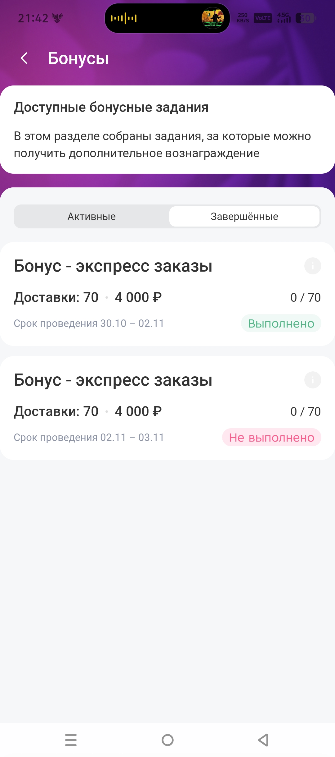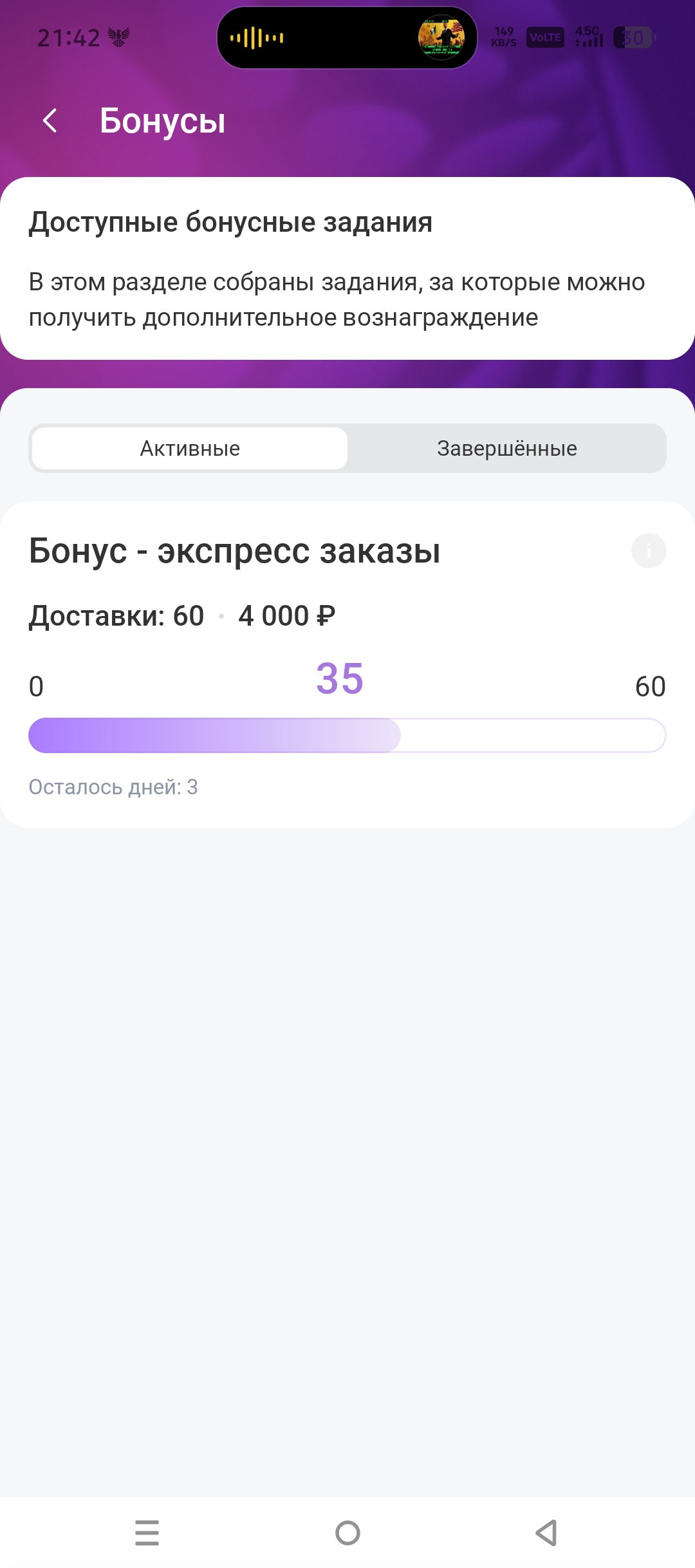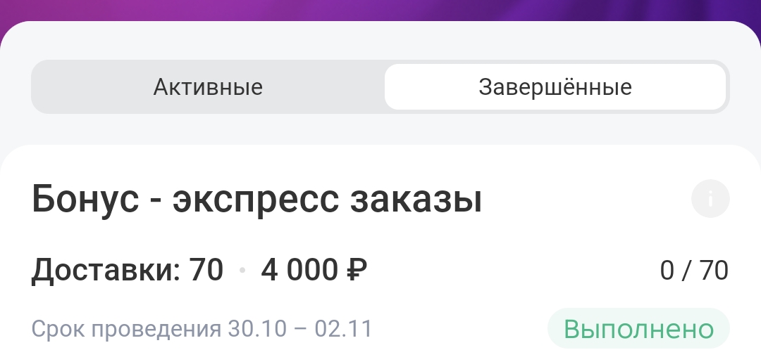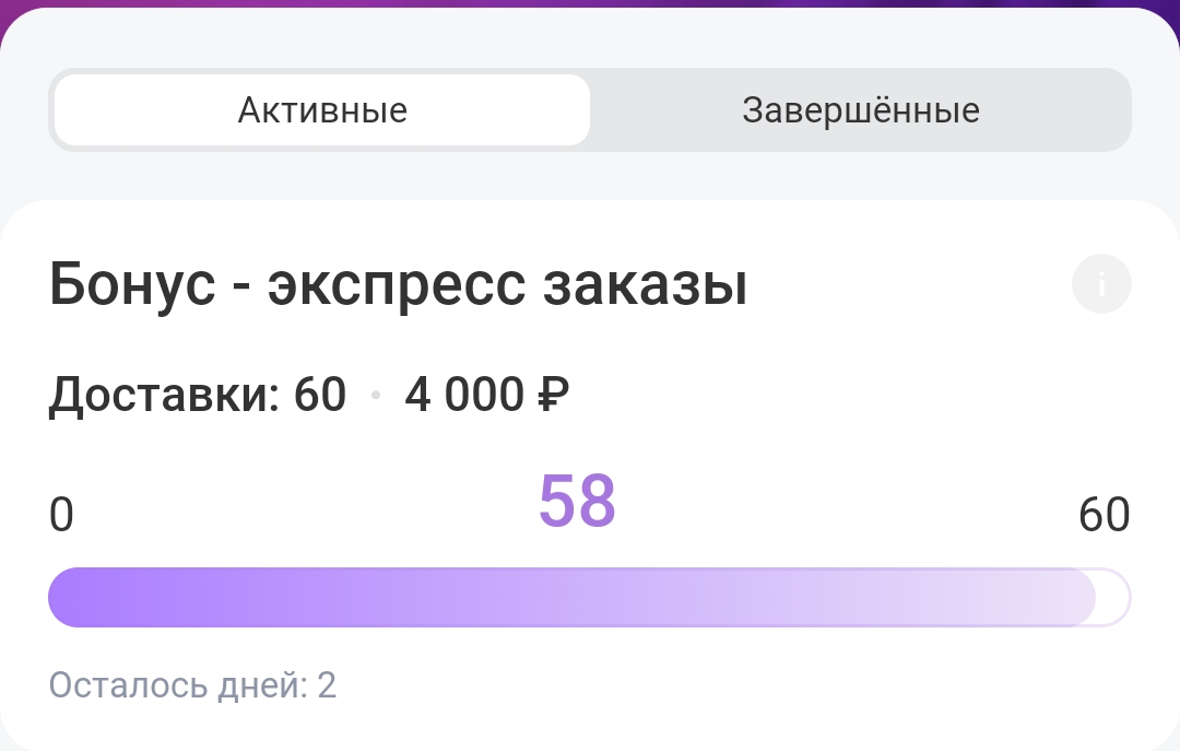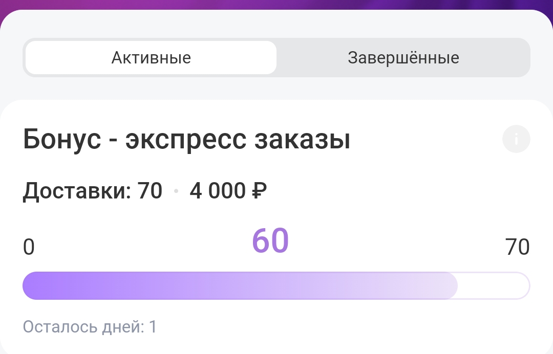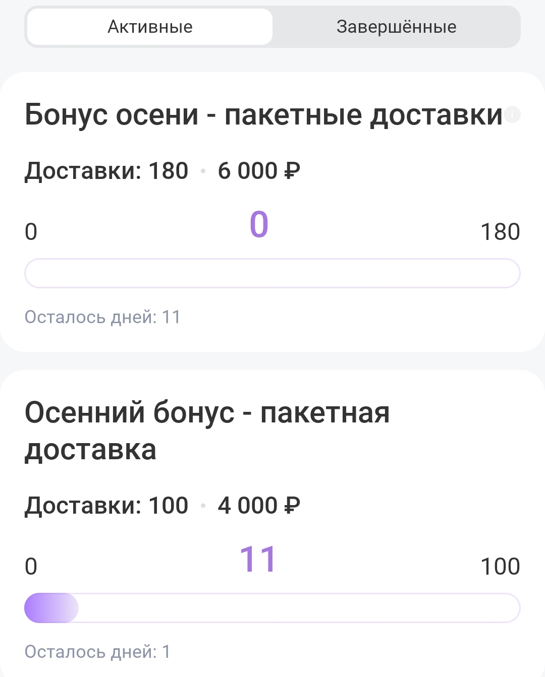 >>3209781 >>3209366 В "нулевой" день можно закрыть нормально бонус? Или эта хуйня может в любой момент слететь? Бонус на 70 заказов закрывал именно в нулевой день. Сейчас получил ещё на 60. Не хочу жопу рвать что бы до четверга всё закрыть. Планирую оставить заказов 10-12 на четверг. Вроде как бонус исчезает после нулевого дня.