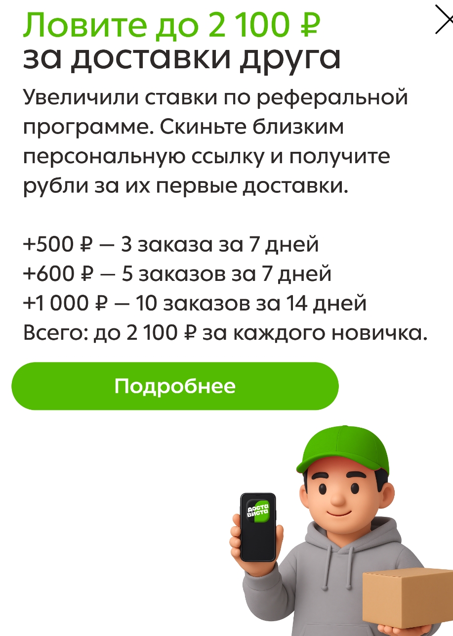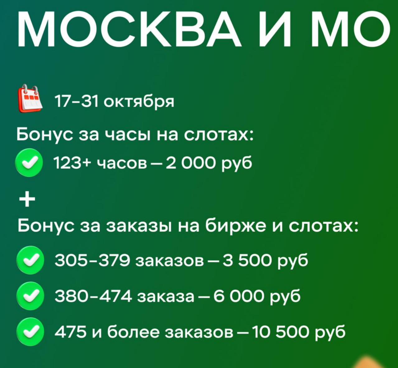 >>3197705 Неправильно вы делаете... За длинным рублем гонитесь. Я дома сижу с включенной приложухой, в компик играю. Беру заки только если из ПВЗ из моего дома, максимум в соседних.. Строго не тяжелее 5-6кг, и не дальше пары сотен метров. Когда зак возьму до талого еще жду чтобы еще насыпало, прежде чем из дома выйти. Потом вышел, подбродил чисто как до местной Пятерояки по расстоянию, и вот 500-700рэ за день в кармане. На пиво в самый раз. Кстати часто под пивом и ношу, зак сделал банку выпил на скамеечке. Мне эти 10 минут что клиент будет примерять ваще срать, не тороплюсь никуда 🙂