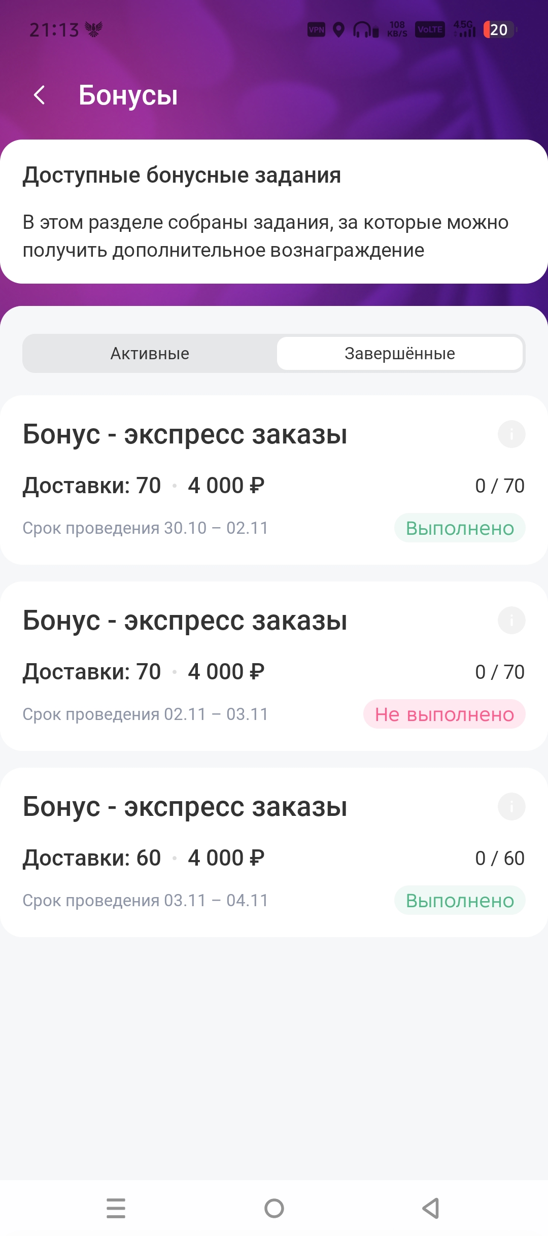 Вчера сделал 20 кружочков, сегодня 25. Бонуска сегодня сбросилась, по рассказу пвзэшницы у другого курьера тоже вчерашние заказы не засчитались. Ну и похуй, времени нет этим заниматься пока. Пешком делать по 35 в день у меня на районе это пиздец.