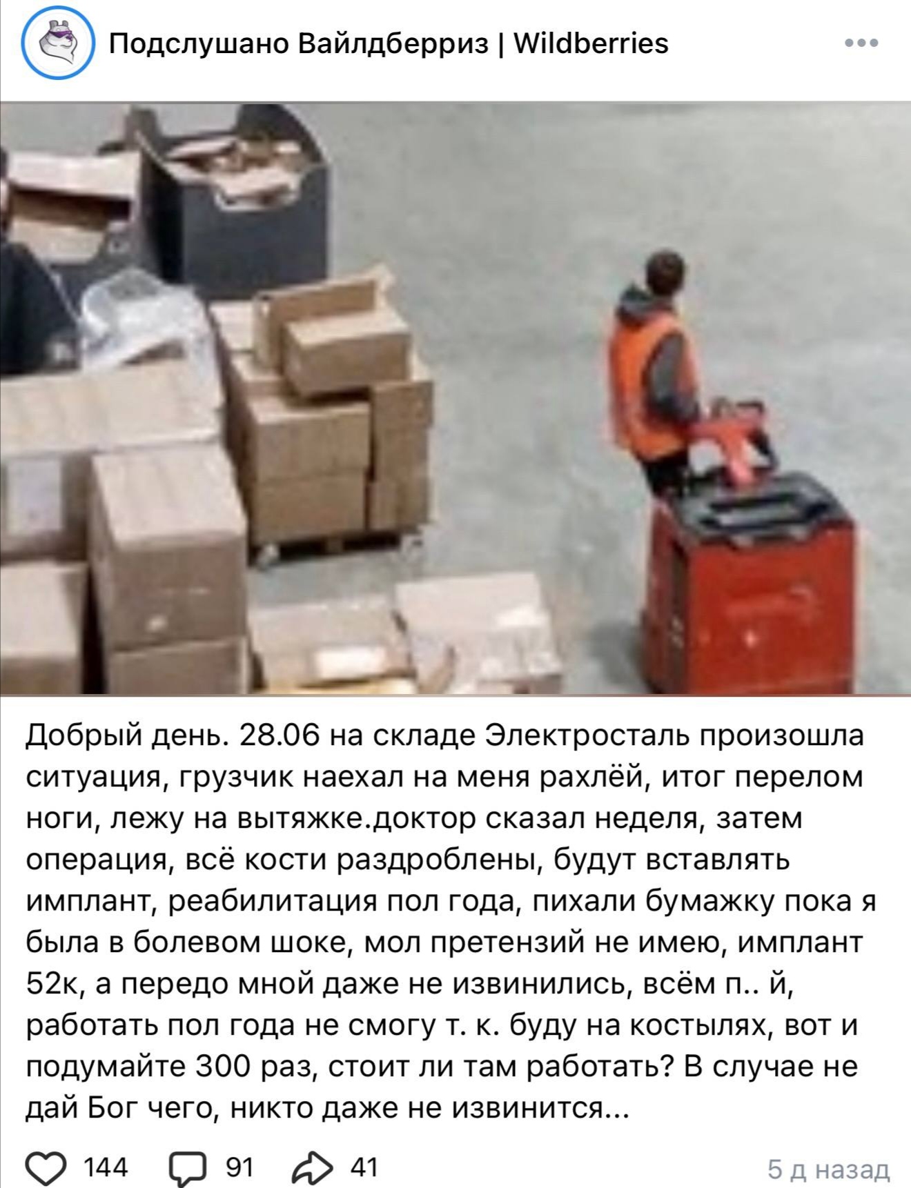 >>3205685 Кстати, на вб много раз общался с тётками возрастными, которые ушли с озона как раз из-за того что физически не тянут. Просто не могут весь день поднимать и опускать все эти тарники и коробки, спина отказывает. И девка молодая мне тоже как-то говорила, что у неё из-за тягания этих тарников весь день низ живота к концу дня болит каждый день и что надо ей бросать эту хуевую работу, пока матка не выпала. Типа последние дни дорабатывает, потому что деньги нужны, потом другую работу искать. Ну и из разговора с ней понял, что она не одна такая, кто жалуется на тянущие боли внизу живота после рабочего дня.