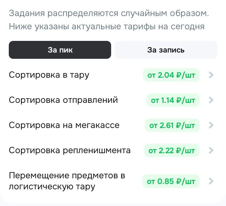 Q)А по выплатам что? А)В отличии от Озона, заработанная сумма в приложении показывается уже за вычетом налога. Но есть нюанс: в приложении есть две плашки Тарификатор и Баланс. После смены деньги идут в Тарификатор и лежат там 2 дня. В течении этих 2 дней с Тарификатора могут вычитать штрафы. На 3 день все что осталось от ваших денег за вычетом штрафов переходит в плашку Баланс. Баланс уже является неприкосновенным и из него ничего не вычитают. Дальше можете либо копить деньги на Балансе, либо вывести их на карту почти любого банка там большой список банков. Можно выводить деньги по сбп.