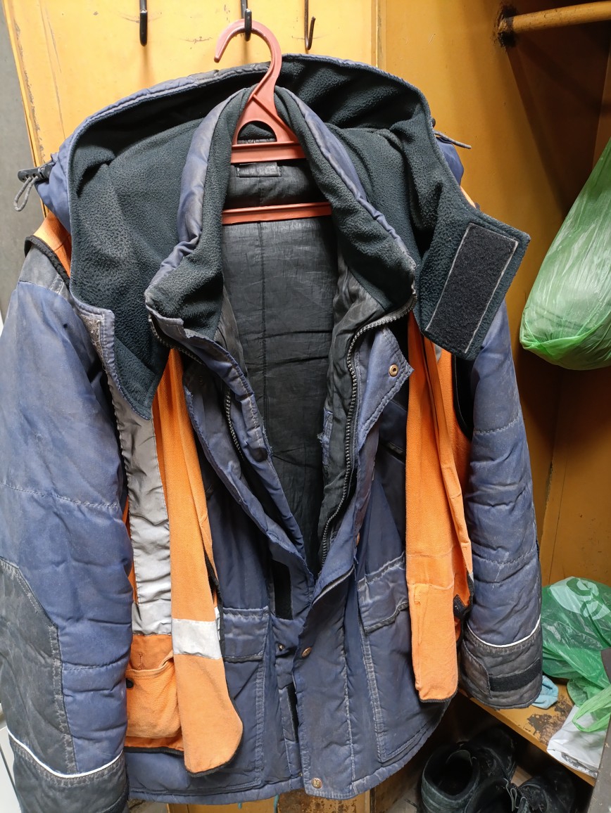 Обзор моей роскошной синтетической куртки для выживание в зимнее время! Данная модель не продувается ветром и достаточно слоя термо белье + хлопчато бумажный костюм, чтобы было тепло! Так же она ниже талии и закрывает спину и жопу от ветра, а внутри можно дополнительно застегнуть полоску ткани чтобы меньше задувало снизу. Дополнительно используется светоотражающий жилет - он дополнительно закрывает спину куртки от загрязнений и на нем полоски чтобы быть видным в темноте и не быть раздавленным грузовиками, это важно. Так же можете видеть широкие края капюшона с застёжками липучками - если одеть его и застегнуть то получается вся шея закрыта от ветра и можно закрыть почти все лицо если утянуть специальные шнурки по бокам,. Сам ящик хранения оборудован системой крючков подвесов на дверях и внутри секций, можно видеть эти крючки - очень удобно для расширения пространства. В пакетах дополнительно комплекты нательного белья и чистые носки и нижнее белье. В эту куртку можно уткнуться лицом и застегнув капюшон дремать на стульчике в углу в тепле и уюте, можно так же ложить ее под голову можно поваляться в чистом месте где нибудь.