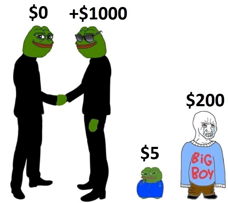 >>3216227 Я вообще-то 1000$ пепе. Зарплата не говорит ни о чем, только то, что у тебя остаётся после уплаты всех платежей. Если с 1000$ у тебя остаётся 50$, а бигбоя остаётся 100$, то, очевидно, он богаче тебя.
