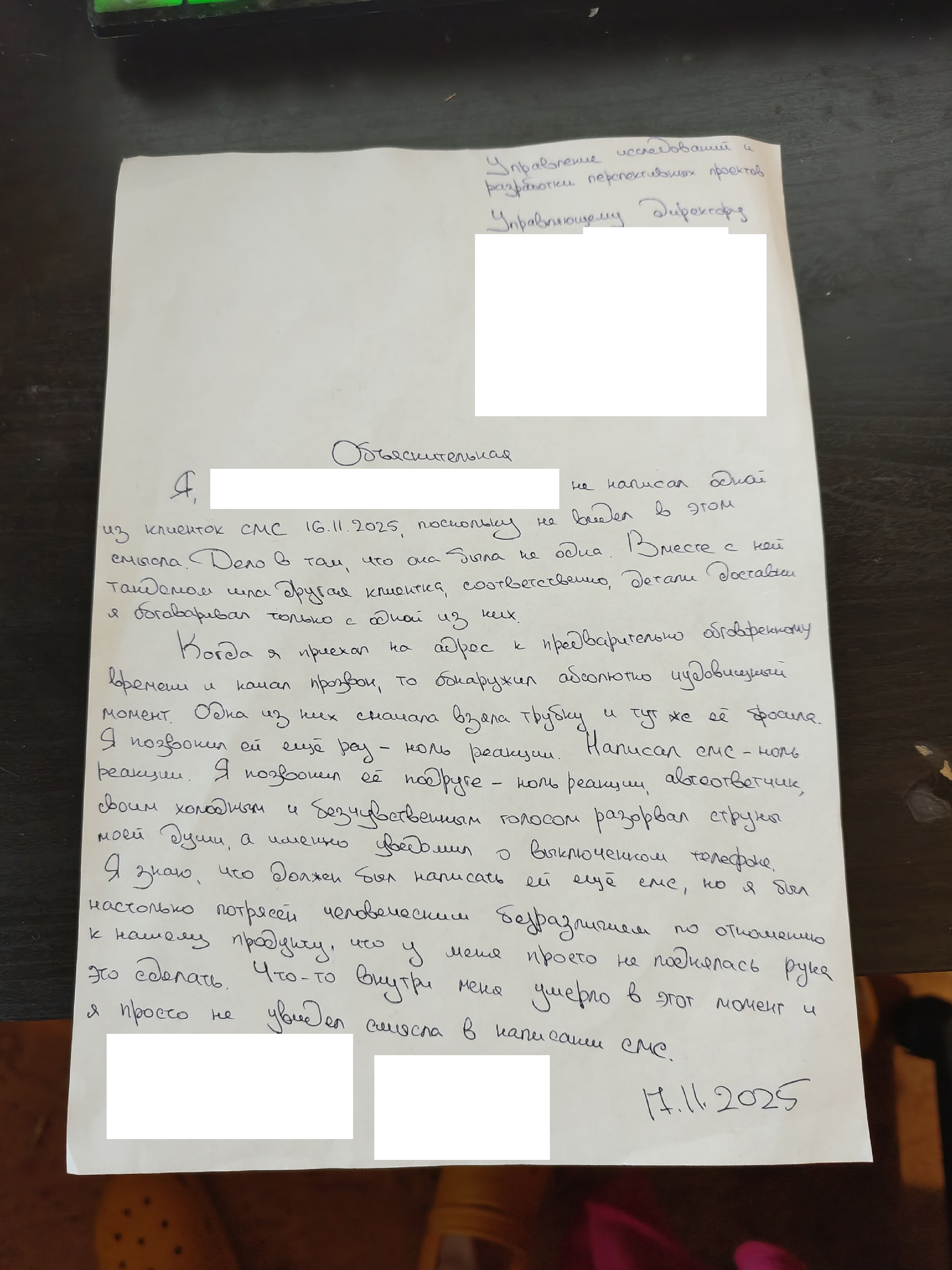По итогу, сходу же забили на уход домой. Если развез всех людей раньще срока, то надо писать логистам чтоб дали маршрут за другой день, иначе будут вопросы, а хули я не до 22:00 работаю. Очень быстро включили область, но добровольно. Соответственно, оставался только вопрос времени когда это станет обязаловкой. Сегодня же меня поставили перед фактом, что я должен 20 и 21 числа ехать в Электросталь и Мытищи. Это стало последней каплей. Премия - наебалово. Она есть, она смехотворна и вообще не зависит от меня. Можно получить либо 5к, либо 10, либо 15. Зависит от количества доставок, но там коэффициент нарисован так, что хуй ты даже 5к получишь. Оклад с вычетом налога 78к. Приятно, наверное единственная приятная деталь. Клиенты дегенераты, тут как всегда. Очень часто за человека меня не считают. Сливаются по миллиону разных причин. Иной раз человек 7 за день доставить уже хорошо. Бонусом прикладываю объяснительную за сегодня кста.
