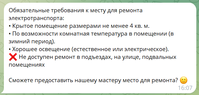 день 3 (сегодня) -покринжевал 2-3 часа пытаясь предложить свои услуги по зарядке автомастерским и бабке в гараже -созвонился с веломастерской которая занимается хранением великов, добро на зарядку дали -выяснил что кулер не у аккума, а у блока питания. То есть в теории можно подобрать БП в 2 раза слабее без кулера и с таким же разъемом -попердел в хостеле, чуть зарядил аккум, снова побегал с аккумом до велика. Который прикольно так покрылся ледяной коркой (надеюсь что договор я понял верно и оплачивать мне в случае чего придется только механические повреждения, а не отсыревшие компоненты) -седло с аккумом не закрывалось, пришла ахуительная идея вытащить леску. Седло с аккумом теперь не открывается. Ну я как раз в мастерскую и ехал. Мастерская арендодателя далеко, придется рискнуть у васянов этих чинить -Забыл перед работами обсудить стоимость сделки, ебанули косарь (минут 20 ебли с подпиранием седла пытаясь запихнуть леску в участии 2 мастеров) за услуги. Хотя для мск может и не супер много. Хорошо хоть проследил чтоб болт свой не вкручивали. Насчет аренды вроде договорились. Если не будет анлака очередного завтра поработаю смену.