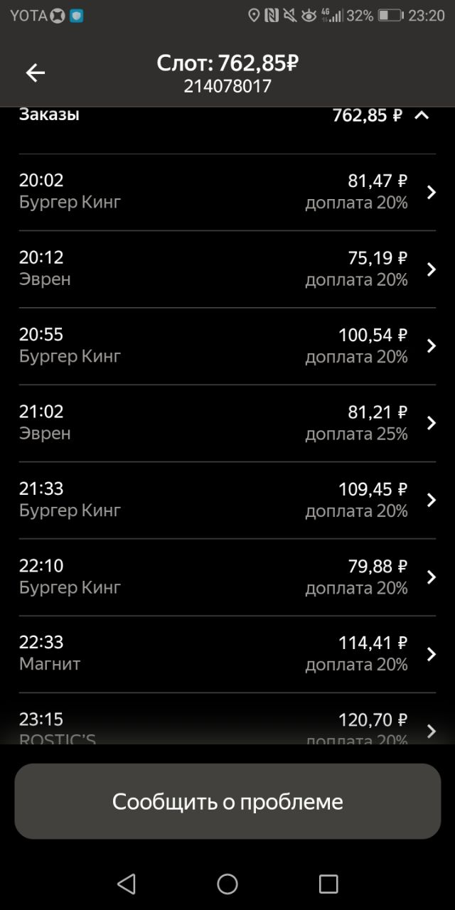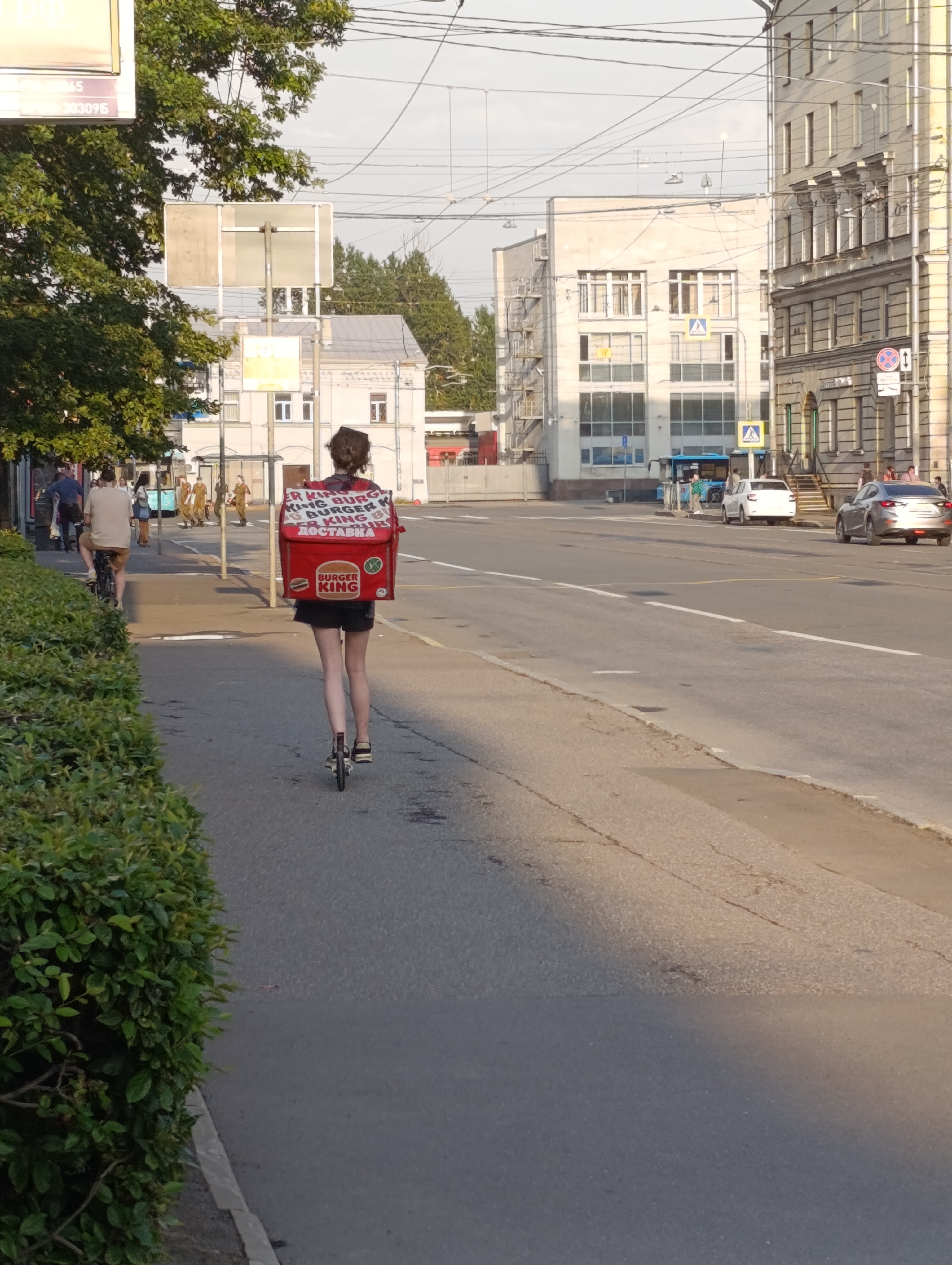 А потом чуть позже был случай, взял заказ из соседнего дома с моим, подумал, сейчас этот доставлю и домой пойду. Звоню к домофон, там короче тетка говорит, я ничего не заказывала. Дозвонился до клиентки, оказалось номер дома перепутала. Ну думаю ладно, ничего страшного, там на веле ехать минуты 3. Приезжаю, в домофон звоню, никто не открывает. Опять ей звоню, она говорит "я не дома, мужу позвоню, он дома ". А у меня таймер до бонуса уже истекает, минуты 2 остается. Он выходит, я у него код спрашиваю, он естественно не знает. Опять звоню клиентке, короче пока она мне код назвала, таймер истек, 30 рублей проебал, пиздец вообще. Ну зато я потом еще два заказа отвез, один из которых был 10 кг кошачьего корма за 160+30 р