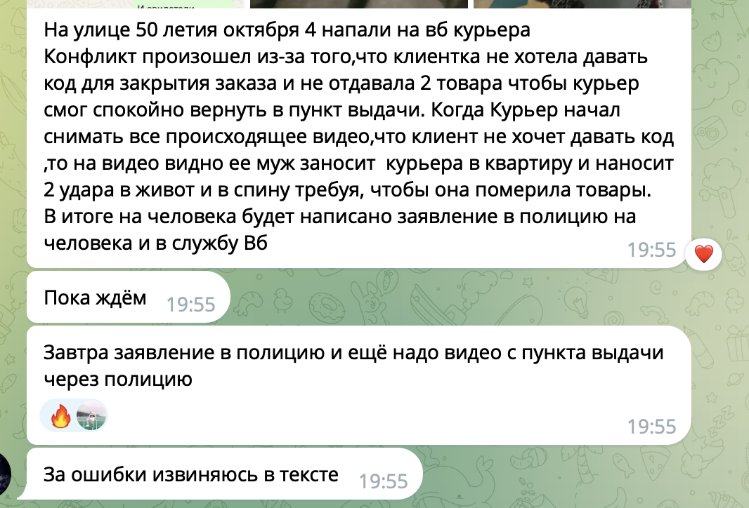 А мне сегодня какая-то баба смс написала - где мая вторая половина заказа!!!!!! вб. Не стал ей отвечать и вздохнул когда "выплата отправлена в банк", теперь могут че хотят вешать я не буду тогда ходить, у меня на примете другая интересная курьерка