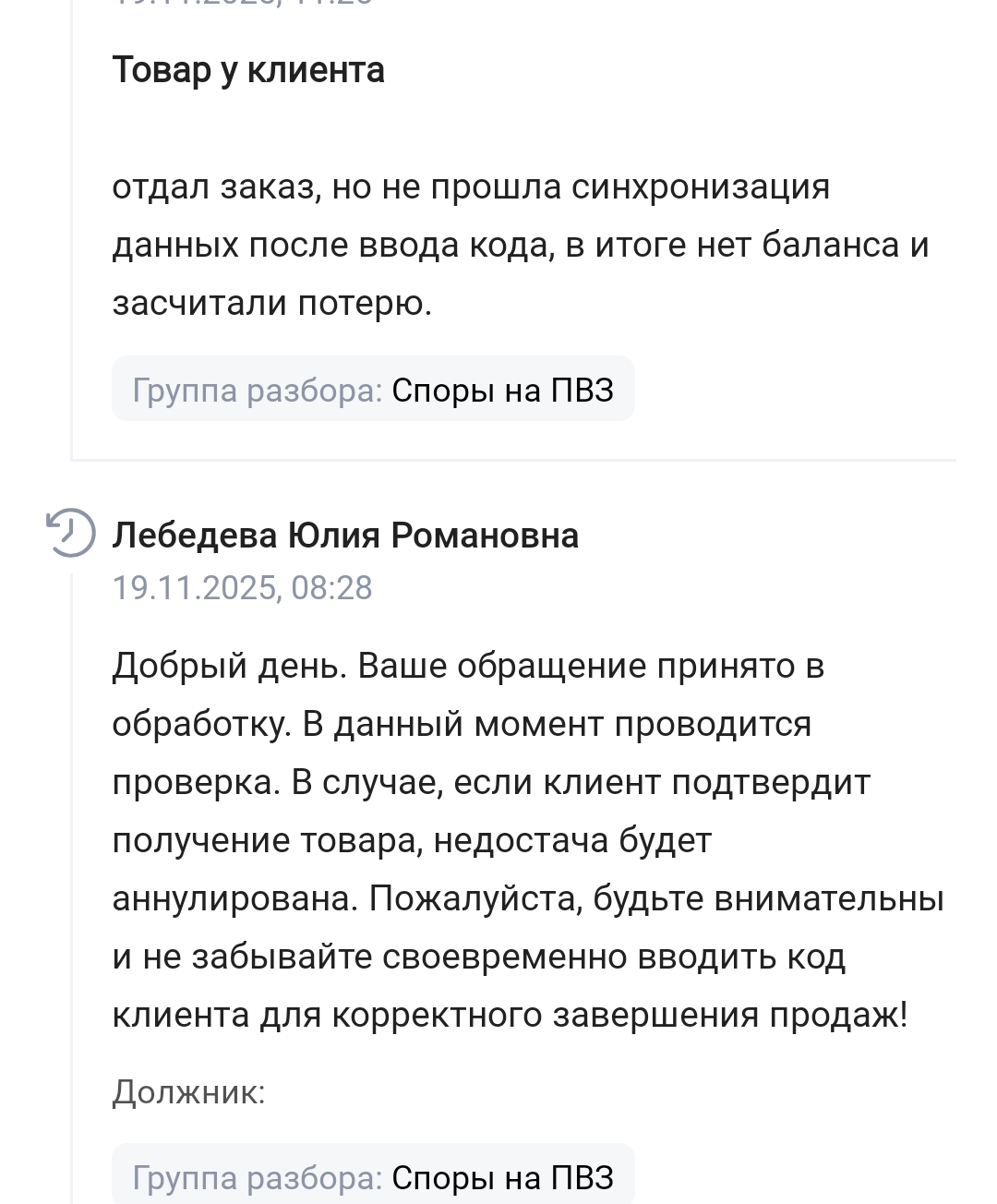 >>3218558 >Надо было звонить клиенту и просить код для возврата, Так я позвонил, объяснил что брак, попросил код, но код был только для получения, для возрата тупо не было кнопки/окна, при нажитии на возврат выдавал только код для пвз.