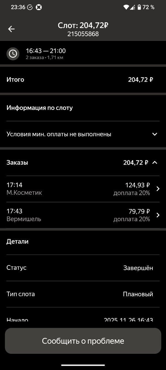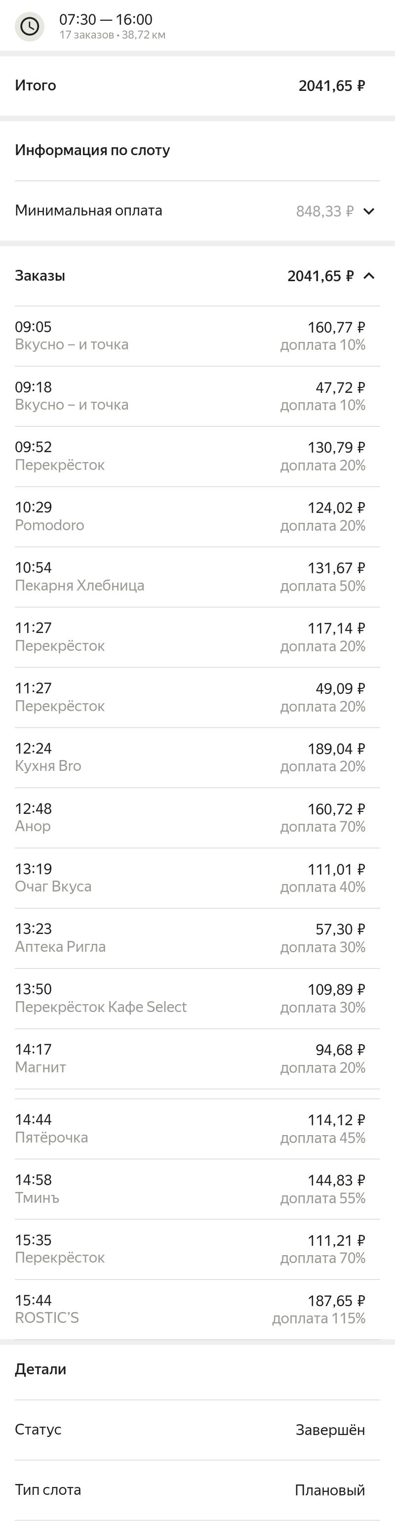 > Кароч ща медленно докатаюсь, осталось 4 заказа до бонуса, потом на выходных разберусь с велом. Бтв это какой-то пиздец, все 4 последних заказа как назло прокнули максимально дальние, в ахуе просто, тратил по 40 минут на заказ, которые обычно за 20 делал. Начинаю уже ненавидеть ебучих биржевиков, я не понимаю почему им дают бесконечно роллить заказы и показывают стоимость, они видят её большую и не берут заказ, потому что там с большой вероятностью дальний говняк, который по ₽/час вообще невыгоден. Походу либо х5 эту тему меняет, либо я просто сам перекатываюсь на биржу. Им бы по-хорошему просто забалансить чтобы дальние заказы не было так невыгодно катать, добавить например сколько-то рублей если заказ больше 2км, взяв эти деньги из коротких заказов.