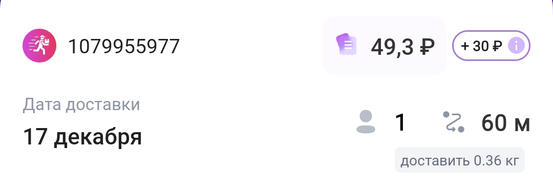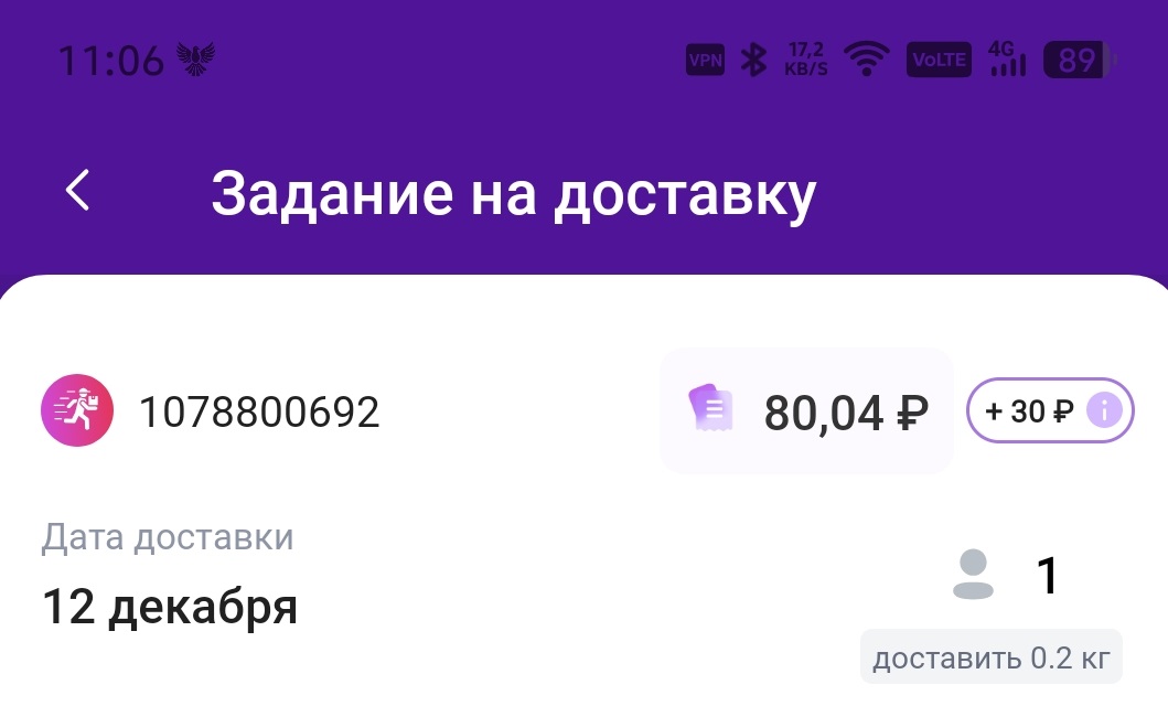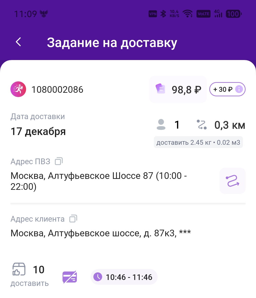 Есть лайфхак как наебывать бурятку в ответ. Тестил дважды, первый раз когда ещё была доставка от 500р и второй недавно. 1. Заведите отдельный аккаунт, с номером не используемым в ВБ курьер и левыми данными. Можно даже на том же смартфоне, если поддерживается дуо сим. 2. Заказываете на 1.5к руб и когда приезжает, оформляете доставку курьером, но ставите адрес доставки в максимальные ебеня на краешке окружности, так вам дадут максимальный лут. 3. Ждёте когда кружок появится и его скипнут все куры, можно даже подольше чтобы была максимальная молния на 350+30 руб. 4. Бронируете, забираете, ставите таймер на 35 мин. Можете отнести домой, возить другие заказы, заниматься своими делами, потом вводите код. Это нужно, чтобы бурятка не палила фрод.