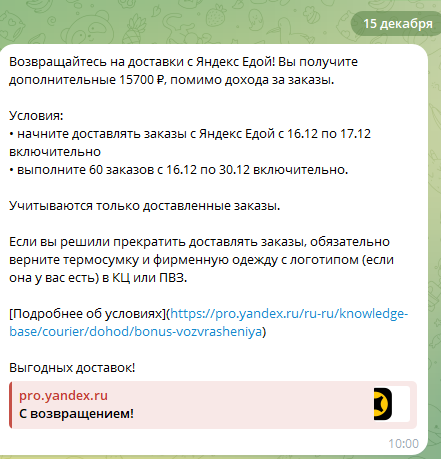 Вкатился в яндекс доставку на своей бричке. За 13 заказов залутал 2500 из которых заправился на 1500. К концу дня аж ноги сводило, а кто то еще на великах наебывает, ну это пиздец, аноны. Лучше бля дворником устроиться или вообще дома сидеть. Словил заказ из Летуаля в местном тц, кое как припарковался, а мне консультантка на кассе говорит что это баг вся хуйня отменяй заказ, ты не первый. Кароче сняли с меня какие то баллы, похуй. Даже если это не учитывать, я весь день таскал пакеты с ленты за гроши нахуй и пакеты с непонятным содержимым, а последний заказ я уехал куда то в СНТ сука за те же 150 рублей. Я искренне не понимаю, почему этот сервис до сих пор работает, кто бля эти люди кто эту хуйню возит.