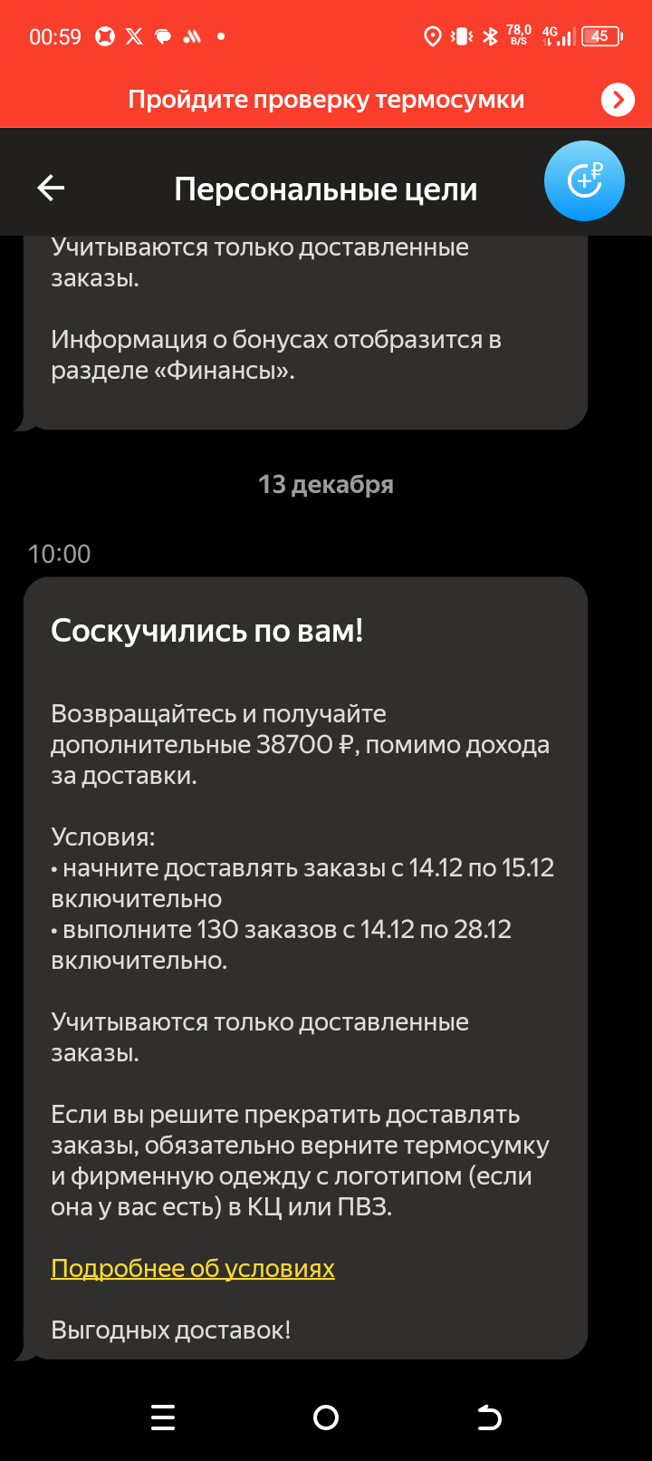 >>3237965 Ты это я, анон. Один раз точно так же поездил, на своей некрухе с расходом 13л, потом открыл для себя пеший/вело аккаунт, и на авто уже никогда не вернусь. Ограничение в 5км решает. При гораздо меньшем пробеге получаешь те же деньги. Можно "мой район" поставить. Ещё на пешем яша хорошие цели иногда даёт. Раньше были ежедневные, сейчас только персональные на неделю. Вот сегодня +5100 за 45 вручений пришло, очень неплохо. Короче, попробуй, мб зайдет. Алсо можно в ночь катать. Я раз попробовал, мне понравилось. С полуночи до 12 дня, тогда была ежедневка +2000 за 25 заказов. Возил всякую круглосуточную шаурму, вкусноиточку и лавку. Без беготни по всяким тц, без пробок, без суеты. Вышло около 6500, на 1000 заправился (на той же некрухе), короче, вообще небо и земля в сравнении с авто-акком.