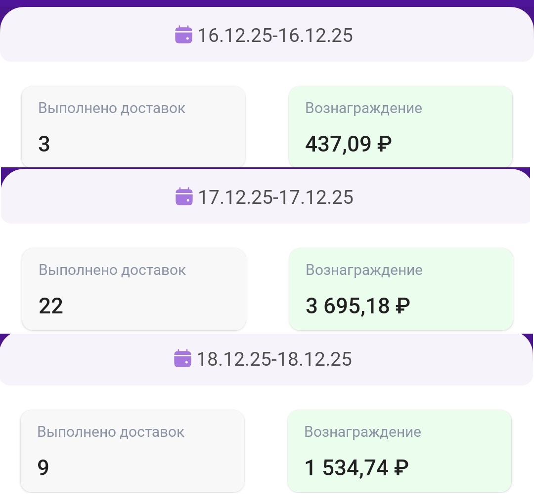 Я сегодня решил яндекс доставку покатать впервые за долгое время и с утра было очень даже ничего, 1000р/ч. Пробеги конские только и таймеры короткие, я взял минимальный кружок по моему району 3км радиус и меня мотало везде. А потом все хуже и хуже по ценнику, закончил когда мне подсунули мультик на 3 дальних заказа x5 за 300р. А после 17:50 опять пытался поймать зак от 500 в лужице, но мне предлагало только зз на краю района, куда пилить 20 мин, наверное тоже 200р заплатили бы ну нахуй такое. Из лужицы поймал только 2, проскипав штук 7 наверное и из этих 2 второй мультик с пиццей, ожиданием и пробегом в половину района . Такое себе в целом, пару раз в неделю можно для приключений