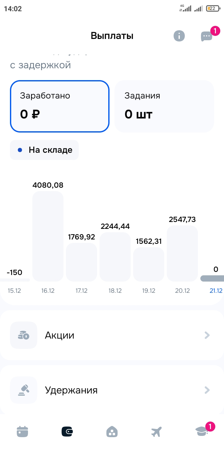 Здарова, работяги. Работаю в Озоне, мини склад..Пятый день уже. Вообще насколько реально там 5к заработать. У меня больше 1500 рубасов не получается. Хотя ебашу дохуя, переров кроме 30ти минутного обеда не делал. Нужно ли потерпеть ещё недельку или сьебаться на ВБ?