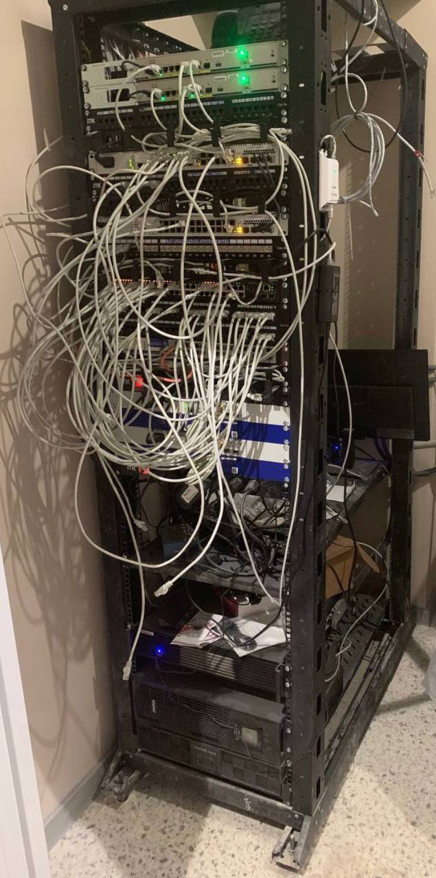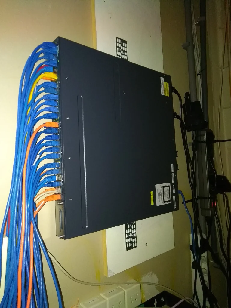 >>3257856 Ну у вас хотя бы шкаф, а не висящий над армтсронгом на янкерах коммутатор. Самое смешное и грустное, что альтернативы был ещё хуже. У нас сетевой шкаф стоял рядом с батареей на посту охраны в помещении 10м, где ни вентиляции, ни климат контроля, ещё и рядом с окном. Пришлось тащить, резать межэтажные кабели, и рядом с лотками подключать коммутаторы. Теперь у нас коммутаторы на анкерах, над арсмтронг потолком, и если перезагружать - тащи стремянку. Что то вроде этого.
