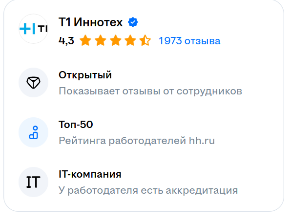 >>3258152 Это АйТи полигон от ВТБ. Точнее объединенный полигон от ВТБ (Иннотех + Т1) До СВО там было заебись, потом санкции на ВТБ и народ оттуда погнали тряпками из-за больших ЗП и премий. Сейчас вроде набирают иногда, но очень вяло и по плюшкам там тухло стало.