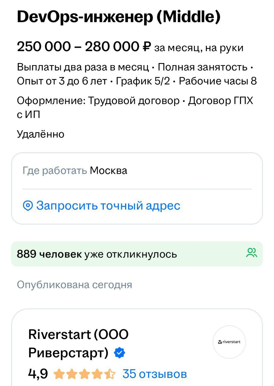 а реально сисьадмином на удаленку устроиться, если в техподе работал только? 1я линия (делаешь все подряд, но прав в системе мало, максимум учетку завести, комп перенести в OU туда сюда) чет вакансии смотришь - везде пиздец требований с гору, но даже туда по 500+ откликов Может надо какой-то парсер навайбкодить, который будет сайты гуглить и выцеплять оттуда напрямую вакансии и телефоны HRа... хз как еще щас искать вакансии