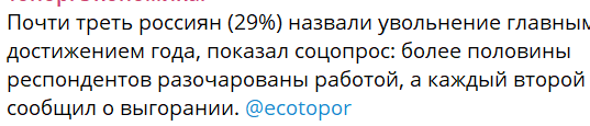 >>3244861 У нас на заводе в ноябре выгнали половину всяких стропальщиков, разнорабочих, слесарей по сборке дилдаков и других "незаменимых специалистов". Наняли новых из-за забора и дешевле. Полёт нормальный.