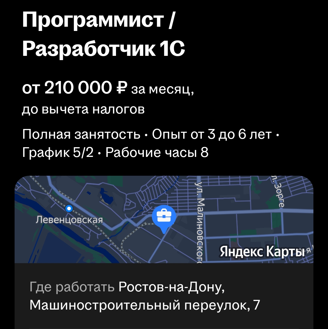 >>3245187 Вкатился в 1С в прошлом году. Но зп всего 80к и это потолок, предел. Больше не будет никогда. Плюс оформление без заветной записи "ИНЖЕНЕР-ПРОГРАММИСТ" в трудовой. Роста нет. Задачи тупейшие. Короче, такое вот псевдо-айти.