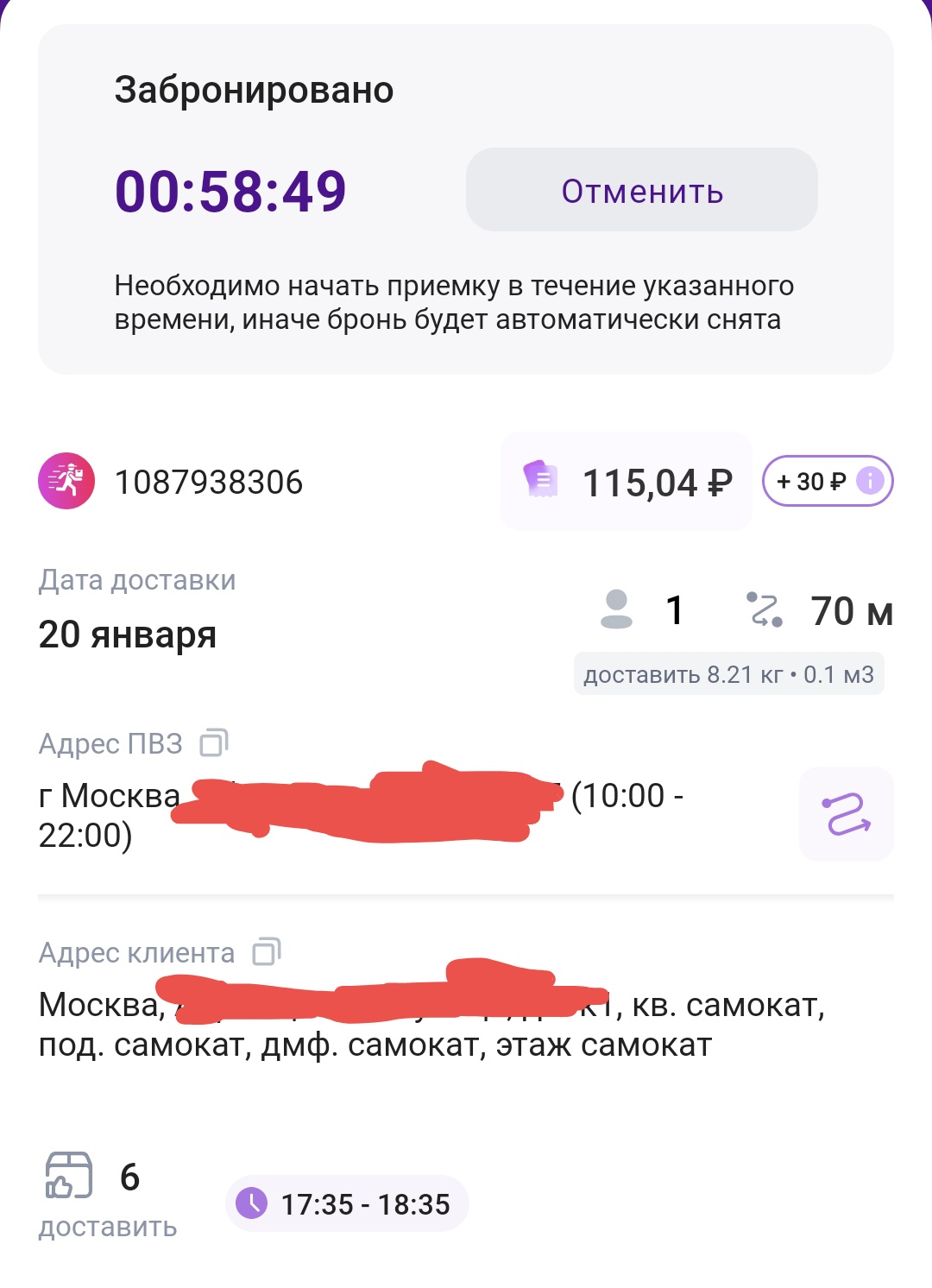 У конторы пидорасов сегодня баг. Висят мультики ебанутые, их никто не берёт. Клиента, походу, заёбывает ждать и он решает забрать сам, а может и отказывается, хз. Адрес и товары исчезают из мультика, типа было 3 адреса, стало 2. Причём, допустим, если в мультике один из адресов был с постоплатой и он исчез оттуда, то всё равно остается предупреждение о постоплате при взятии заказа. Но цена, при этом, остаётся такой же. Ну заебись, чё. Выполняю - заказ успешно завершен, продолжает висеть завершенным в списке заказов, только вот деньги нихуя не капают.