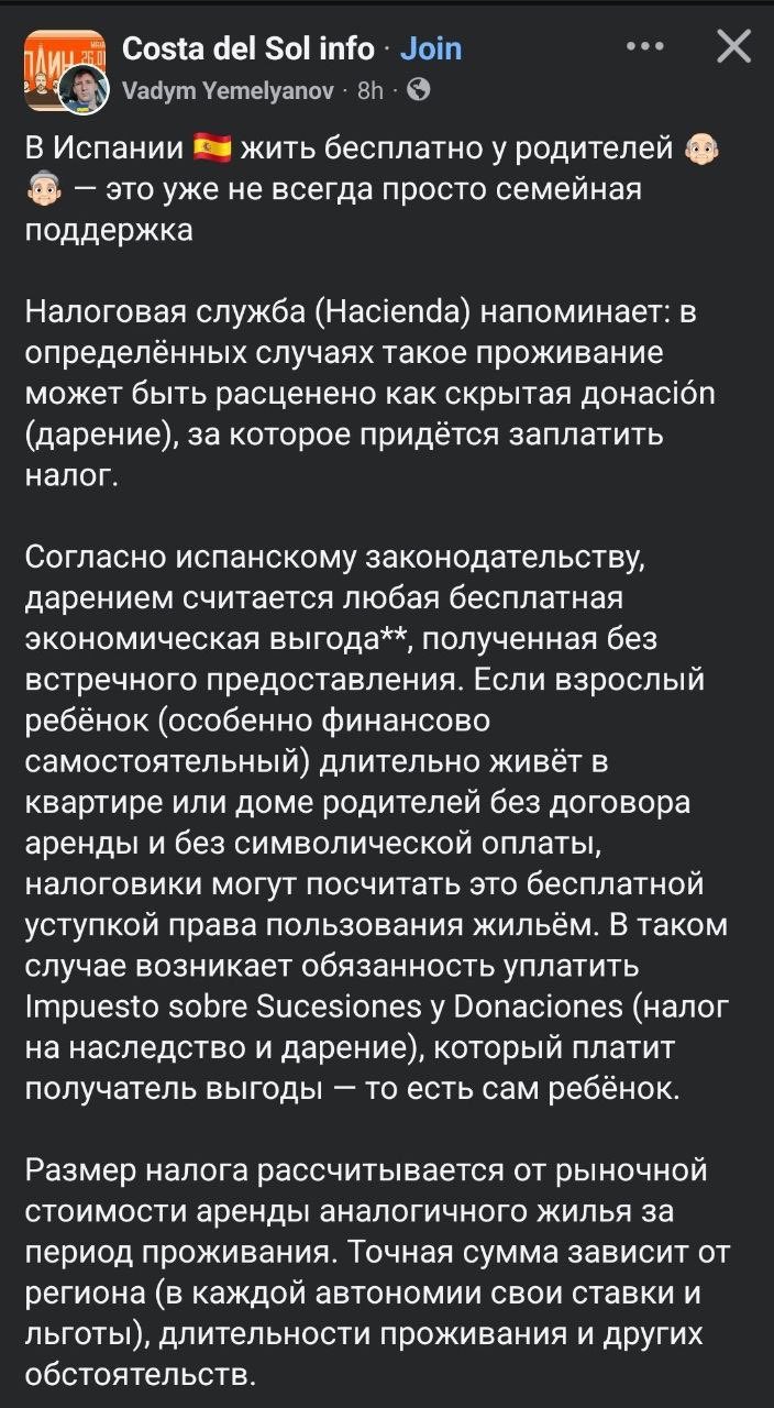 Налоговая Испании начала брать налоги за проживание у родителей, теперь это считается скрытой финансовой поддержкой. До 80% испанцев живут с родителями до 30 лет из-за отсутствия денег и стабильного заработка.