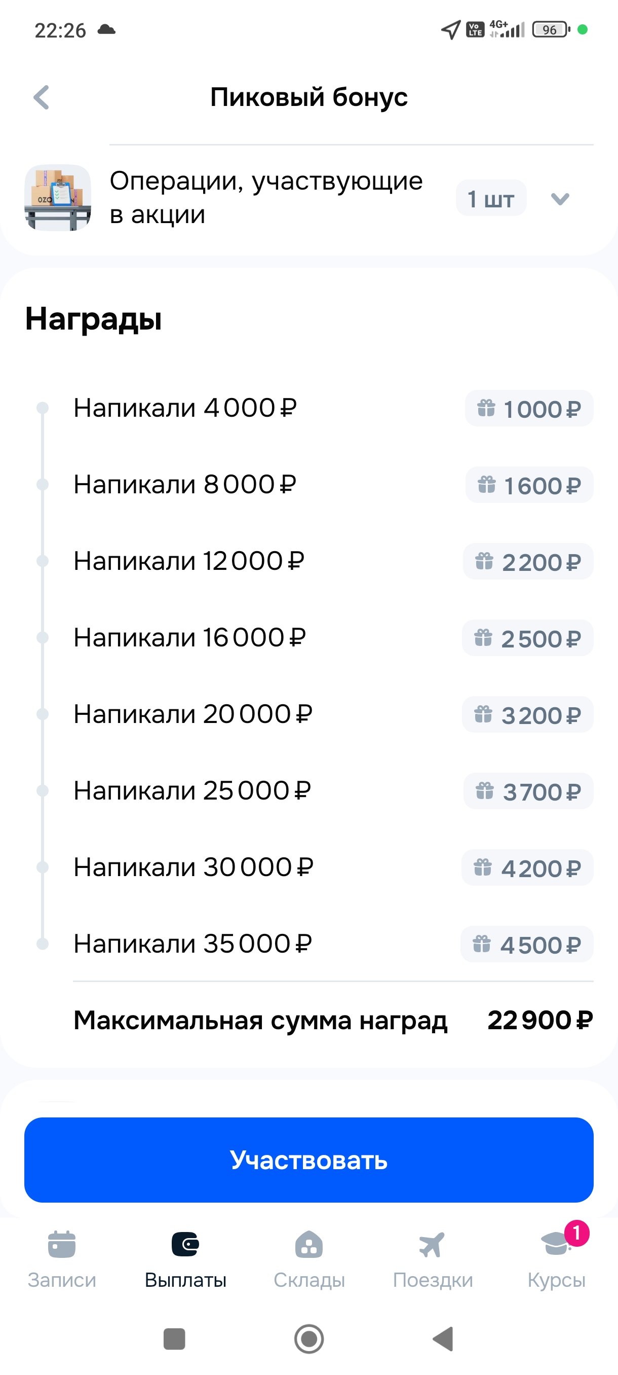 Q)А по выплатам что? А)В отличии от Озона, заработанная сумма в приложении показывается уже за вычетом налога. Но есть нюанс: в приложении есть две плашки Тарификатор и Баланс. После смены деньги идут в Тарификатор и лежат там 2 дня. В течении этих 2 дней с Тарификатора могут вычитать штрафы. На 3 день все что осталось от ваших денег за вычетом штрафов переходит в плашку Баланс. Баланс уже является неприкосновенным и из него ничего не вычитают. Дальше можете либо копить деньги на Балансе, либо вывести их на карту почти любого банка там большой список банков. Можно выводить деньги по сбп.