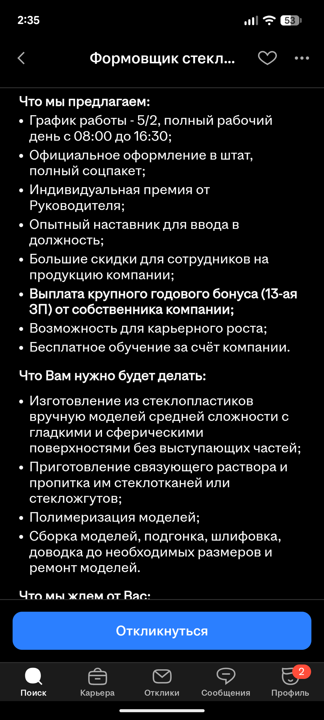 📌Прочие условия 1. При увольнении необходимо отработать 2 последние смены, чтобы агентство нашло замену. 2. Если после недели работы вы решите уйти, вы получите заработанную сумму.