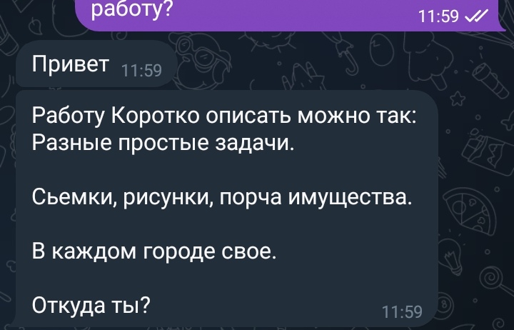 📌Обучение 1. Связывается администратор для знакомства и созвона (без видео, через Telegram). 2. Вас добавляют в Telegram-группу с обучающими видео (время просмотра – 1–1,5 часа). 3. После прохождения обучения вы приступаете к первой пробной смене.