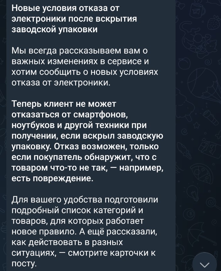 Я даже не буду говорить в сотый раз про какой нахуй возврат брака лол. В чем смысл этих правил они себе представляли когда писали? Типа целый товар возвращать нельзя, а вот сломанный можно потому что...?