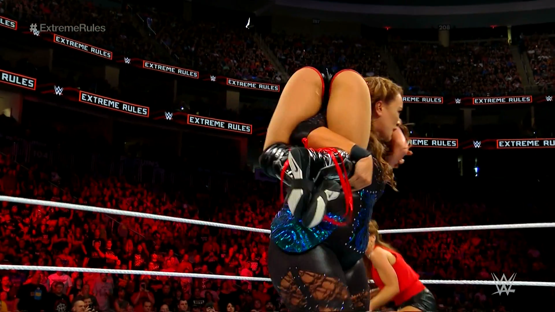 >Raw Women's Championship: Ronda Rousey (c) vs. Alexa Bliss Всё ожидал когда у Ронды из лифона сиська выпрыгнет. Кто-то что-то заметил? Порадовала жопа Алексы что Алексу не показали совсем слабачкой как в прошлый раз. Короче, Ронда ёбанная имба.