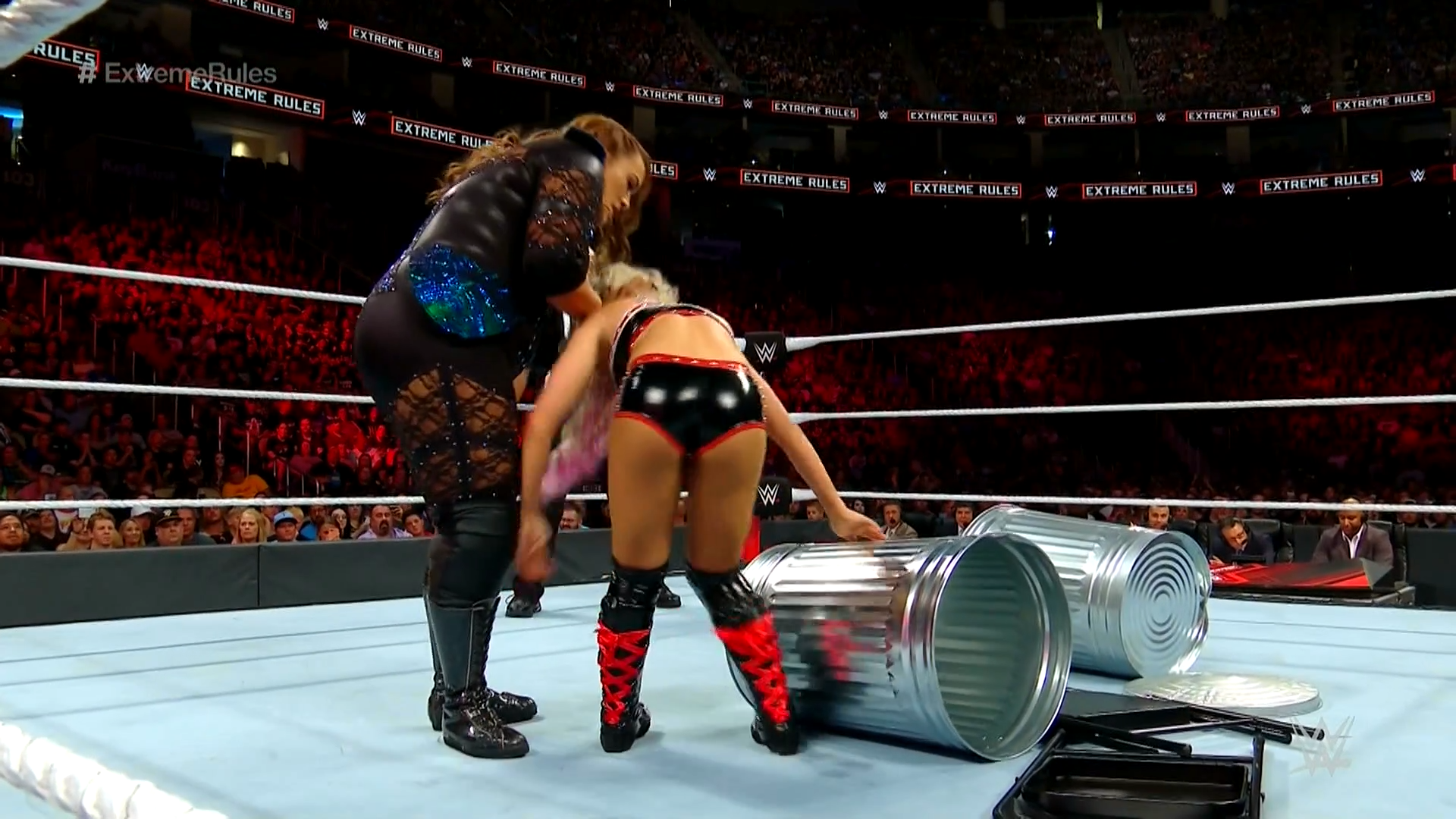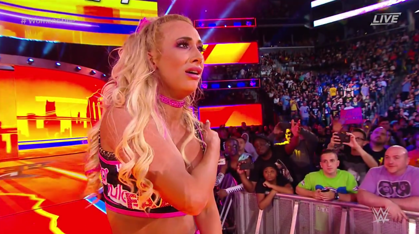 >SmackDown Women's Championship -- Carmella (c) vs. Becky Lynch vs. Charlotte: У всех тяночек новые прикиды, а Бэкки выглядит как рэйдер из фоллача (хороший намёк на последовавший тёрн).