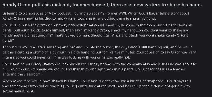 >>14740 Да ладно тебе, наверняка они с Винсом махнут рукой на это недоразумение, посмеются, пожмут друг другу руки, Рэнди пообещает больше так не делать, они ударят по рукам и Рэнди дадут титул.