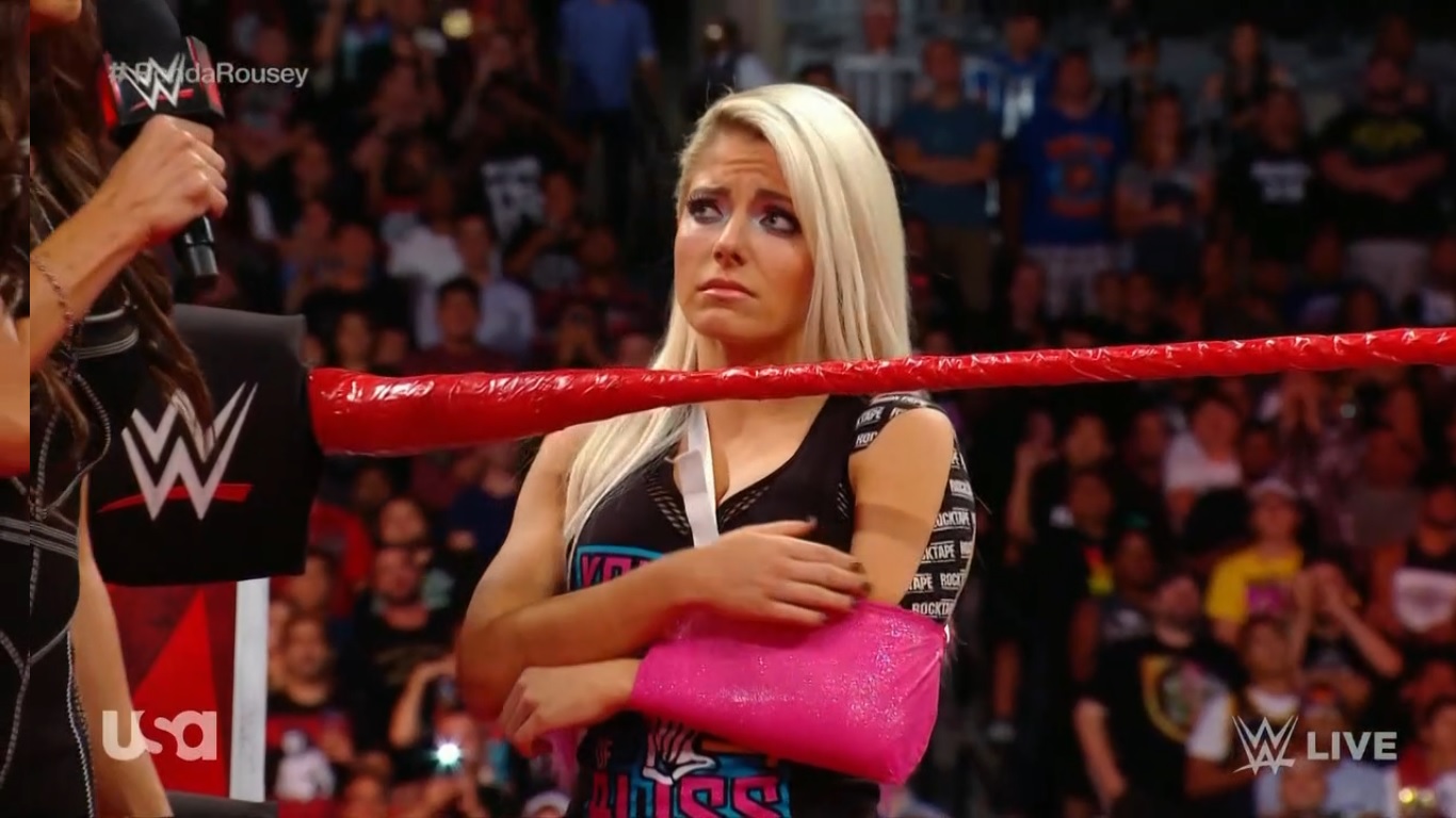 >Raw Women's Championship -- Alexa Bliss (c) vs. Ronda Rousey: Больно было смотреть на этот сквош фиолетовой Алексы. Добро пожаловать в долгий и нудный рейн Ронды.