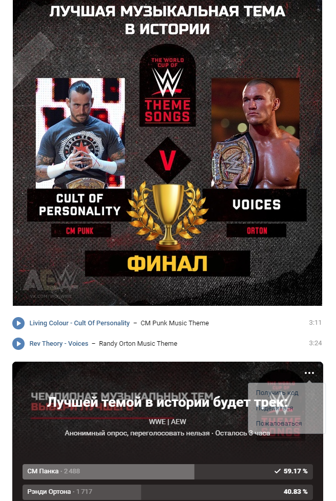 >>25586 >>25591 Потому что в соцсетях важнее то, как считают окружающие, а не как есть на самом деле. Ирл зачастую тоже, к сожалению. >>25593 Не понимаю нахуя его не поставили в Backlash, разве что потому, что это он был бы the greatest wrestling match ever и Эдж с Ортоном потеряются на его фоне.