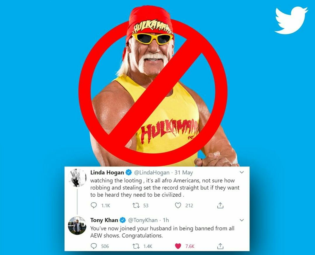 После осуждающего Твита в адрес темнокожих мародеров, Халк Хоган и его жена были забанены на всех будущих шоу AEW. Об этом сообщил лично президент промоушена Тони Хан.