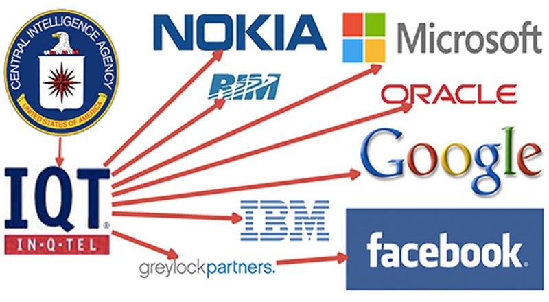 Руководители Cisco Systems (американского транснационального конгламирата в области цифровых коммуникационных технологий, в последствии купившая Granite за 220 миллионов). была тесно связаны с Пентагоном. Лоуренс Зуриф, управляющий партнёр Granite, был участником форумов Хайлендс. Ранее, с 1993 по 1994 год, Зуриф работал подрядчиком SAIC в Пентагоне по вопросам национальной безопасности, в частности, в Управлении сетевой оценки Маршалла. Во время работы в SAIC Зуриф написал доклад под названием "Понимание информационной войны", представленный на спонсируемом SAIC круглом столе армии США, посвящённом революции в военном деле. После регистрации Google в 1999 году компания получила 25 миллионов долларов в виде акционерного капитала от венчурных компаний, Sequoia Capital и Kleiner Perkins Caufield & Byers. По данным Homeland Security Today , "ряд стартапов, финансируемых Sequoia, заключили контракты с Министерством обороны, особенно после 11 сентября, когда Марк Квамме из Sequoia встретился с министром обороны Дональдом Рамсфелдом, чтобы обсудить применение новых технологий в военных действиях и сборе разведданных". Аналогичным образом, Kleiner Perkins разработала «тесные отношения» с In-Q-Tel, американская некоммерческая венчурная компания, базирующаяся в Арлингтоне, штат Вирджиния, по факту венчурное подразделение ЦРУ, занимающиеся инвестициямит в стартапы, проекты и разработки, обеспечивающие Разведывательное сообщество США новейшими информационными технологиями для поддержки разведывательного потенциала США. Названна была в честь "Q", вымышленного изобретателя из рассказов Яна Флеминга про агента 007, который обеспечивал технологиями и гаджетами Джеймса Бонда. Идея состояла в том, чтобы мобилизовать частный сектор для разработки решений в области информационных технологий для всего разведывательного сообщества. Помимо ЦРУ, In-Q-Tel также поддерживали ФБР, Национальное агентство геопространственной разведки США, и Разведывательное управление МО США. Гилман Луи, бывший генеральный директор In-Q-Tel, был участником форумов Хайлендс. Как и его коллега, Анита Кэтрин Джонс, член Совета по международным отношениям, попечитель MITRE, С 1993 по 1997 год она занимала должность директора Департамента оборонных исследований и разработок МО США. С 1987 по 1993 год она также входила в совет директоров SAIC. Она также входила в совет директоров Национального научного фонда США. Компания In-Q-Tel инвестирует в компании, занимающиеся сбором данных и мониторингом социальных сетей. Dataminr транслирует данные из Twitter в поисках тенденций для правоохранительных органов и хедж-фондов. Geofeedia собирает сообщения в социальных сетях, чтобы отслеживать активистов для полицейских управлений и корпораций. Pathar нанята ФБР для сбора данных в социальных сетях с целью выявления экстремистских сетей. Netbase сканирует миллиарды источников в интернете, а Recorded Future отслеживает мировой онлайн-трафик для прогнозирования будущих событий.