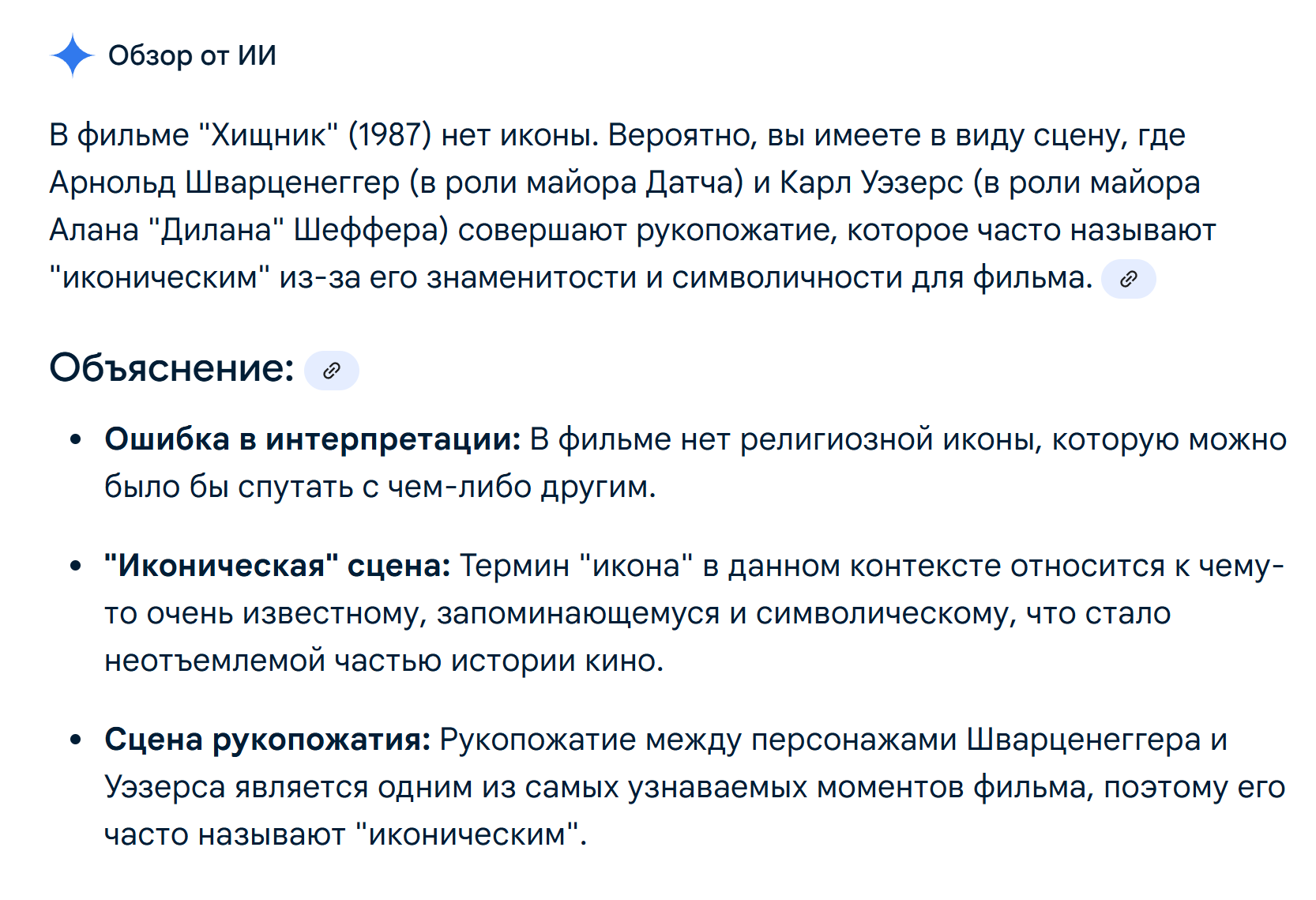 Я сейчас, впервые заметил, что в Хищнике висит икона на стене, в сцене - встречи Датча и Дилана. Богоматерь послала черного Дилана, в помощь Голландцу (Датч, в переводе Голландец и на видеокассетах его погремуху так и переводили и называли в фильме). Голландец прилетел на вертолете. Имя Датча - Алан Шеффер, В осетинском языке Алан означает «божественный» или «благородный», Шеффер: סוֹפֵר (со́фер) - дословно "писец", человек, переписывающий священные тексты, а также писатель. Получается Датч, потомок древних Аланов, Осетин с еврейскими корнями. Также когда они пожали руки и начали борьбу на руках в воздухе, Дилан проиграл и Датч его подколол, сказав - "В чем дело, в ЦРУ ничего тяжелее карандаша не поднимал?" То есть Дилан ранее был сильнее на руках и Датч это подметил, значит Дилан, реально занимался бумажной работой, по сути они оба Шефферы.