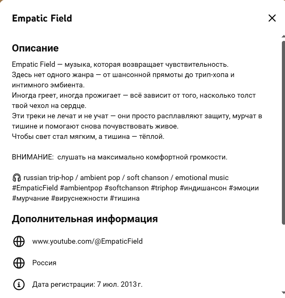 >>932396 (OP) Ебать ты тут напиздел. Сам спиздил трек с канала на тытрубе, где есть более полная версия "Вируса нежности", и прям расписал целый шпионский триллер про ЗАГАДОЧНУЮ ФЛЕШКУ с нейровирусом. В следующий раз неси нормальный контент. Либо ты тот, кто создал этот канал и теперь пытаешься пиарить свою ебанину на Дваче. Немудрено что у тебя всего 4 подписчика еще с 2013 года с таким говеным маркетингом, мамкин бинауральный экспериментатор. Найми себе нормального СММщика и не позорься на Двачике. Тут сидят не только зумеры, но и Ъ олдфаги.